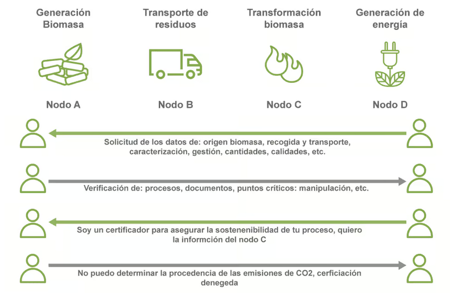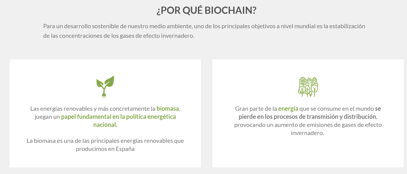 BIOCHAIN, es una solución innovadora basada en tecnología Blockchain dirigida a empresas que operan dentro del sector de la biomasa para que el flujo final de transacciones en una cadena de suministro de la biomasa sea completamente seguro y transparente.