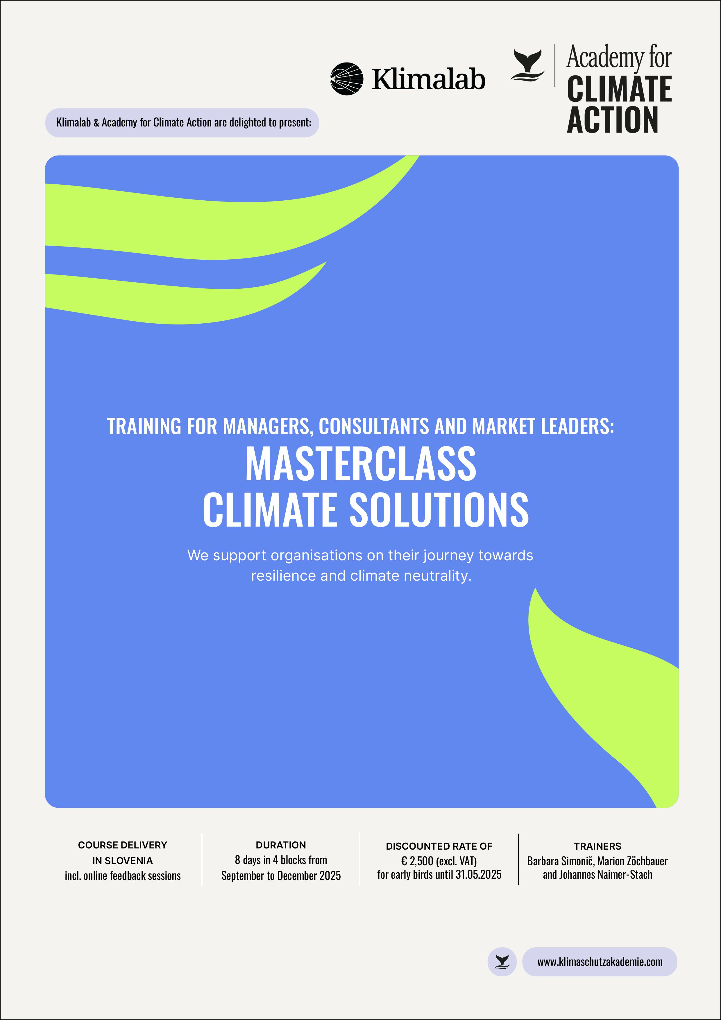 The mission of the Academy for Climate Action is to secure a world worth living for us and future generations. For the economy, this means scrutinizing existing business models, dramatically reducing greenhouse gases and implementing green innovations. We provide public and private organizations with concrete steps on the way to a more sustainable, climate-neutral future. The core of our work lies in a combination of knowledge transfer and implementation expertise from practice and for practice. We bring targeted, group-specific, science-based expertise into our clients' organizations. Thanks to our many years of experience in the fields of management consultancy, sustainability and innovation, we can help organizations and professionals from all lines of industry move from theory to full implementation.