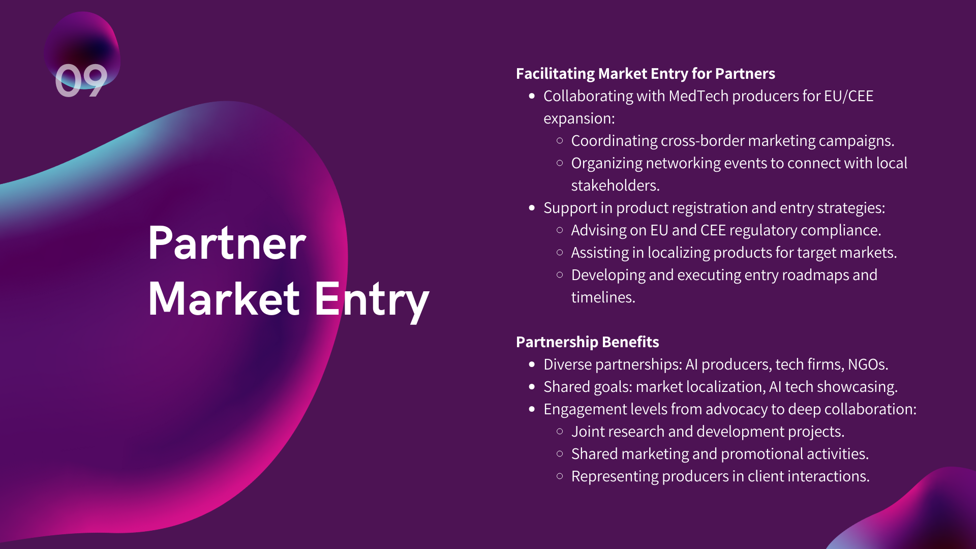 Access to tailored market entry strategies, sales, and marketing support.