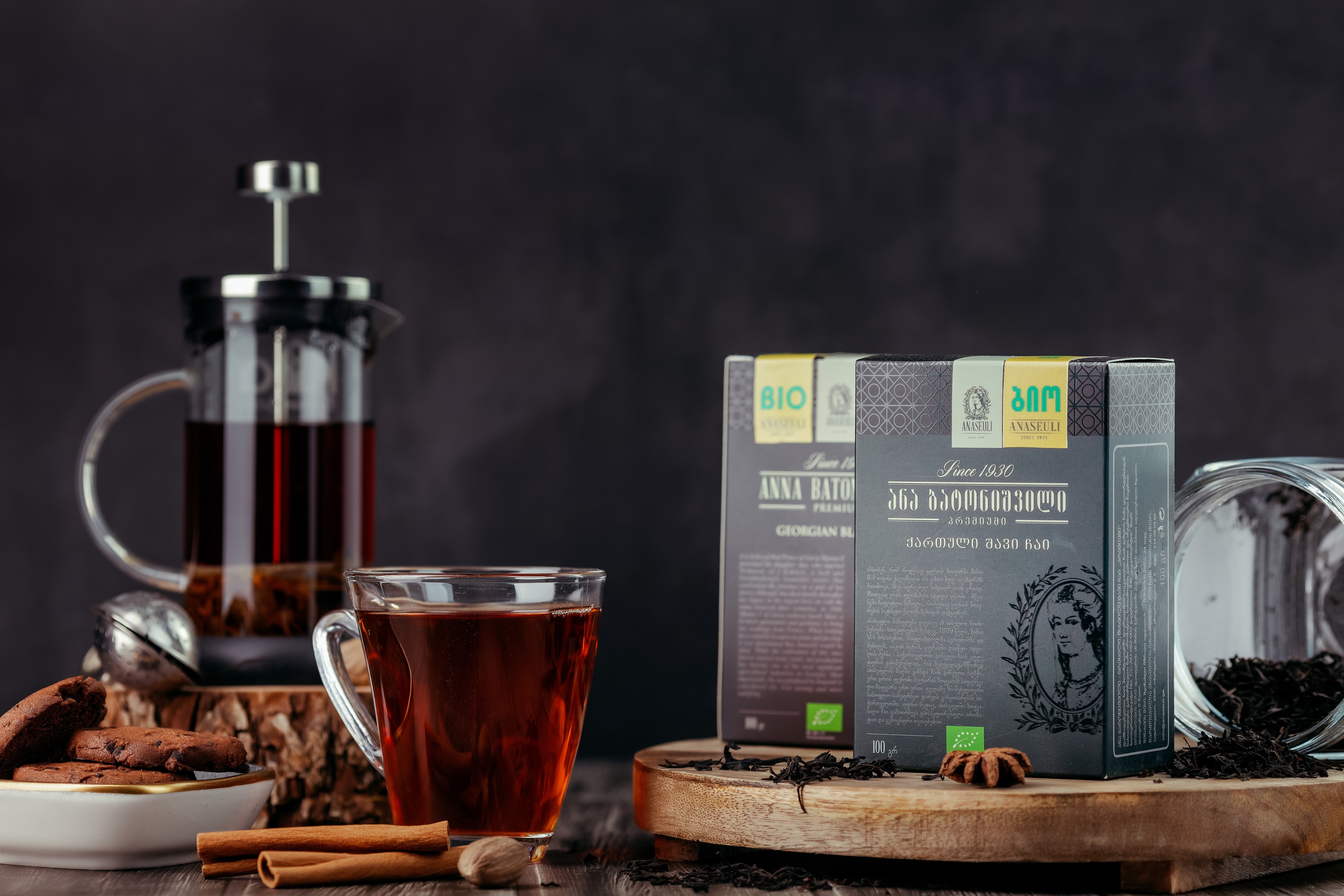With a deep amber hue and a smooth, full-bodied flavor, this tea carries the distinctive aroma of the Georgian terroir—mildly floral, slightly woody, and naturally sweet. It pairs beautifully with cinnamon, cardamom, or a side of chocolate cookies, as shown in the image, making it a delightful choice for moments of reflection or warm conversation.