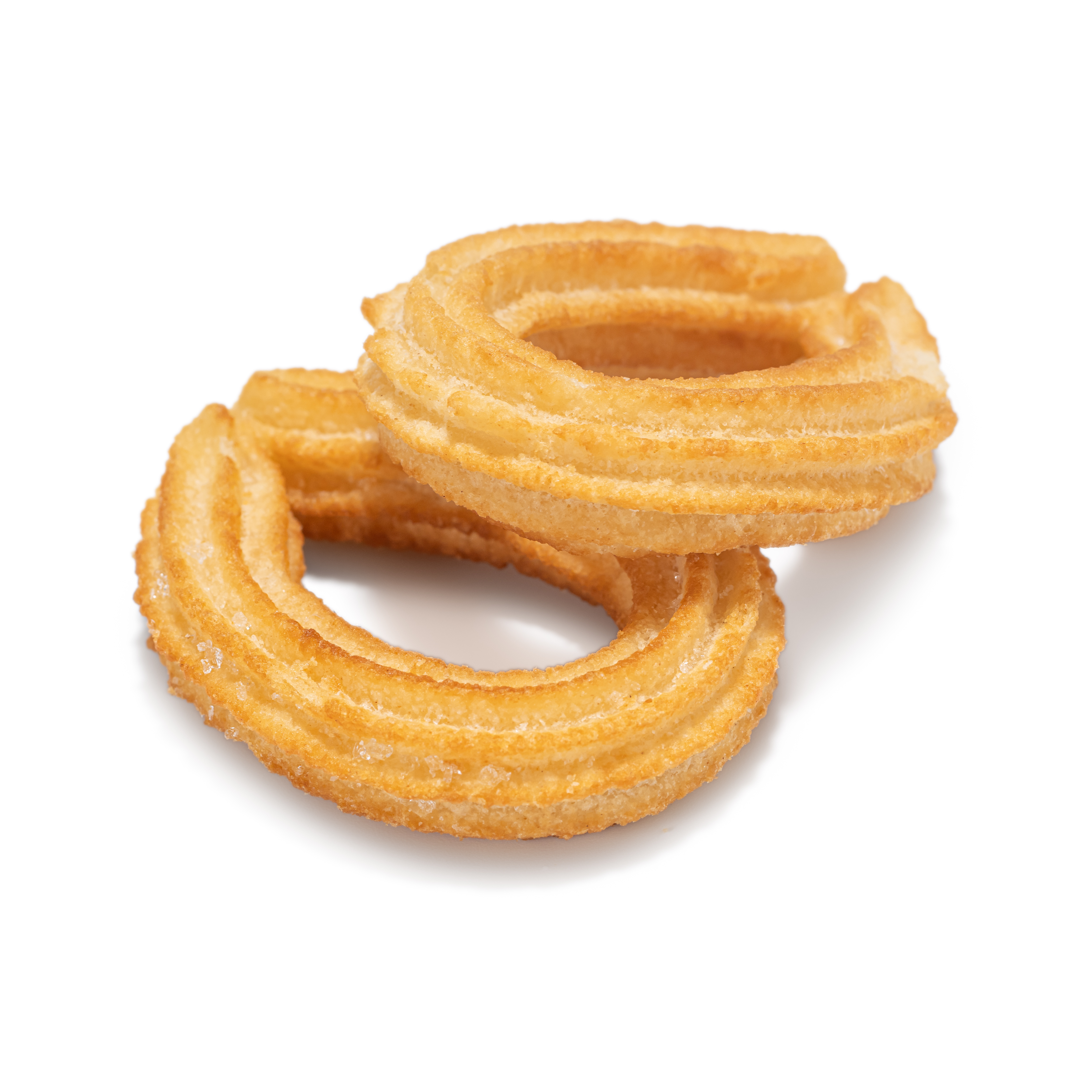 Our pre-fried, deep frozen looped Churro, is produced with 100% natural ingredients, wheat flour, water, oil & salt. It is fried and quick frozen to ensure optimum texture & flavour. They only need to be re-heated direct from frozen in an air-fryer,conventional oven or toaster for 3-5 minutes. Perfect everytime. No oil, no mess and perfect churros.