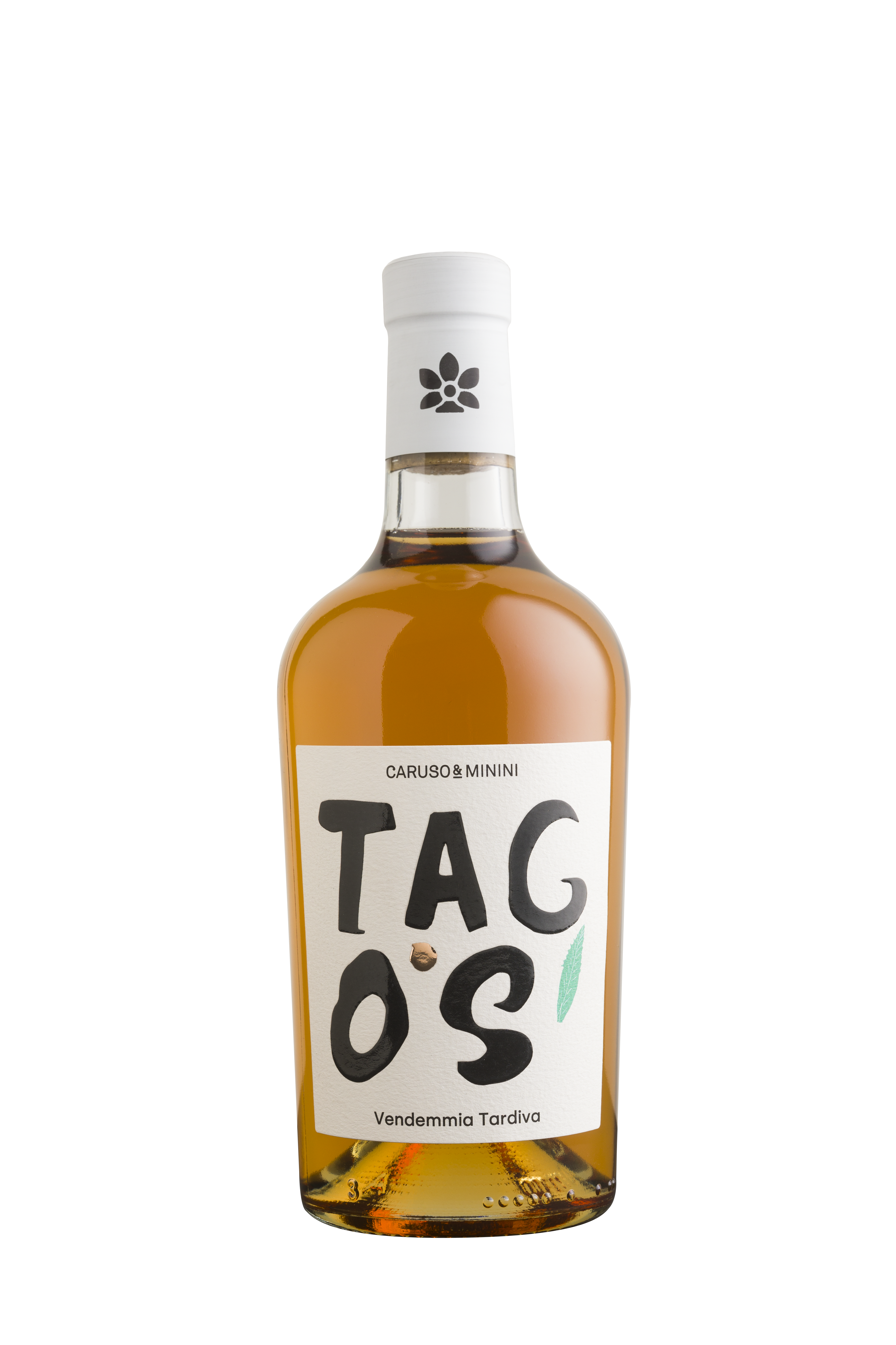 Tagòs: late-harvest Grillo, golden and intense, with honey, cinnamon, and herbal notes. Perfect as a memorable dessert wine.