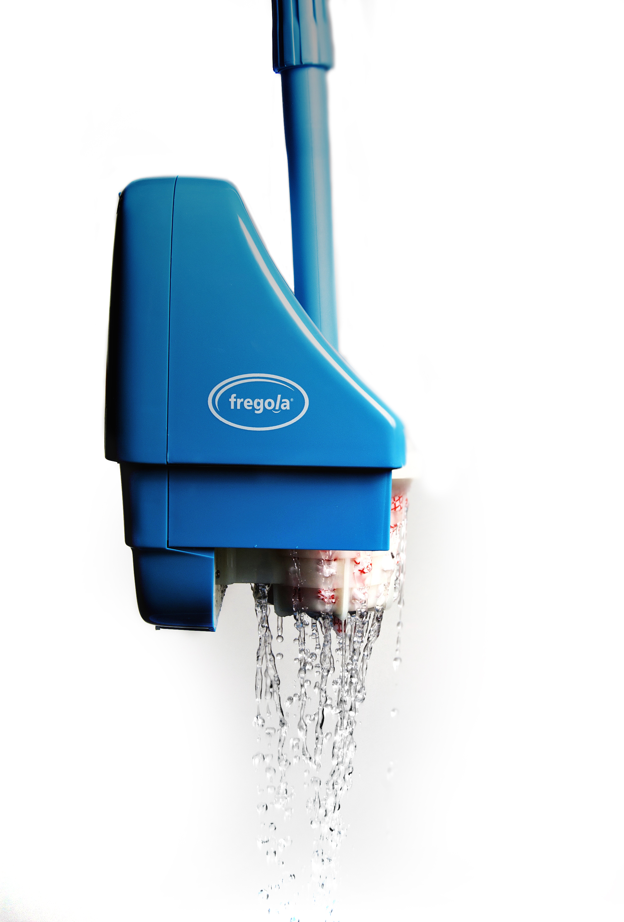 FREGOLA es el único electrodoméstico automático que permite escurrir mopas automáticamente, sin esfuerzo físico y sin cables. Su batería permite hasta 700 escurridos por carga, y el cubo con ruedas facilita su movilidad.
