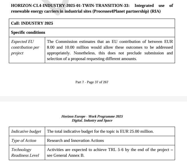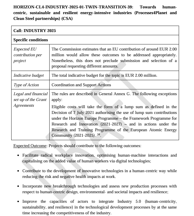 -> HORIZON-CL4-INDUSTRY-2025-01-39: Towards human-centric, sustainable and resilient energy-intensive industries".