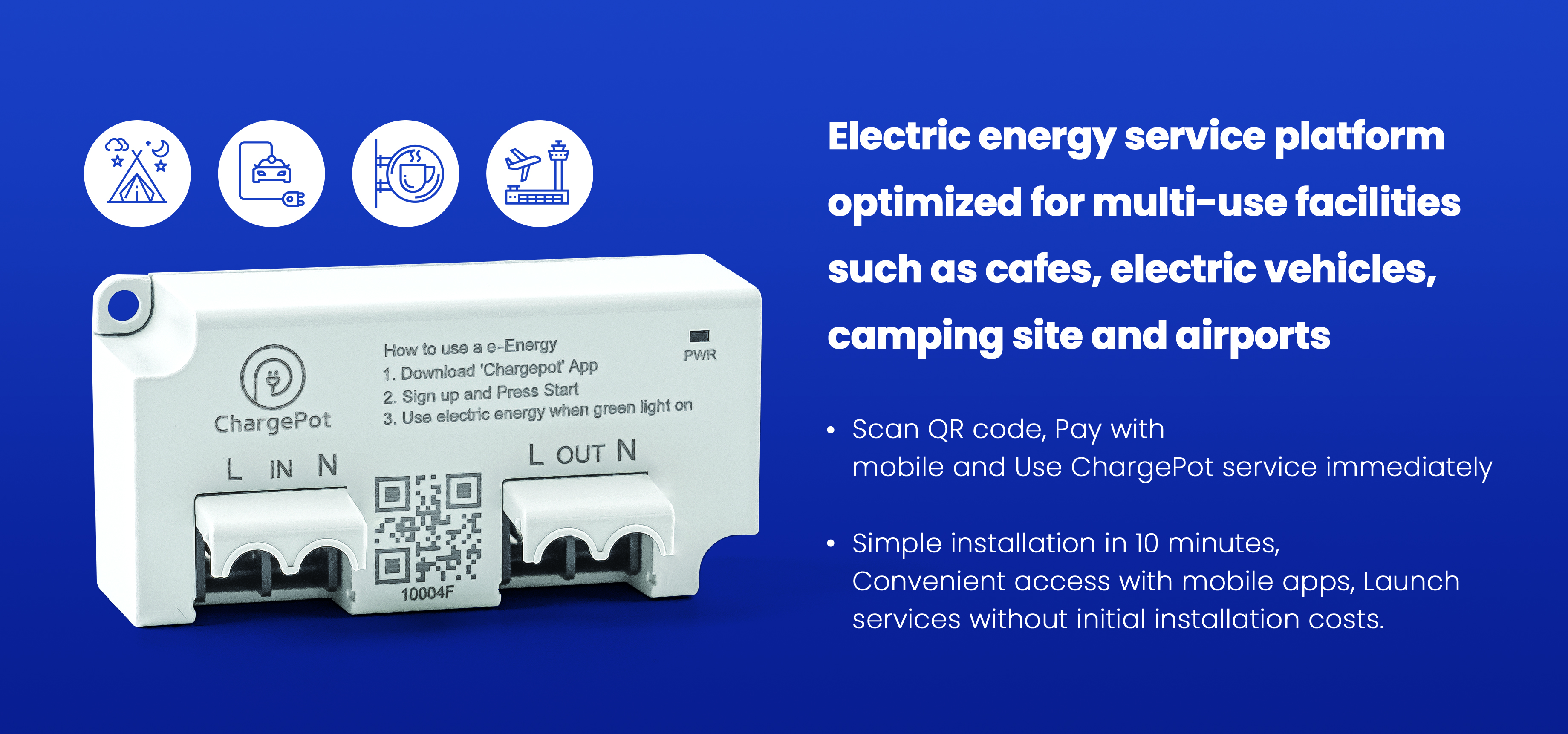 ChargePot is a service platform that allows you to easily use electrical energy anytime, anywhere.