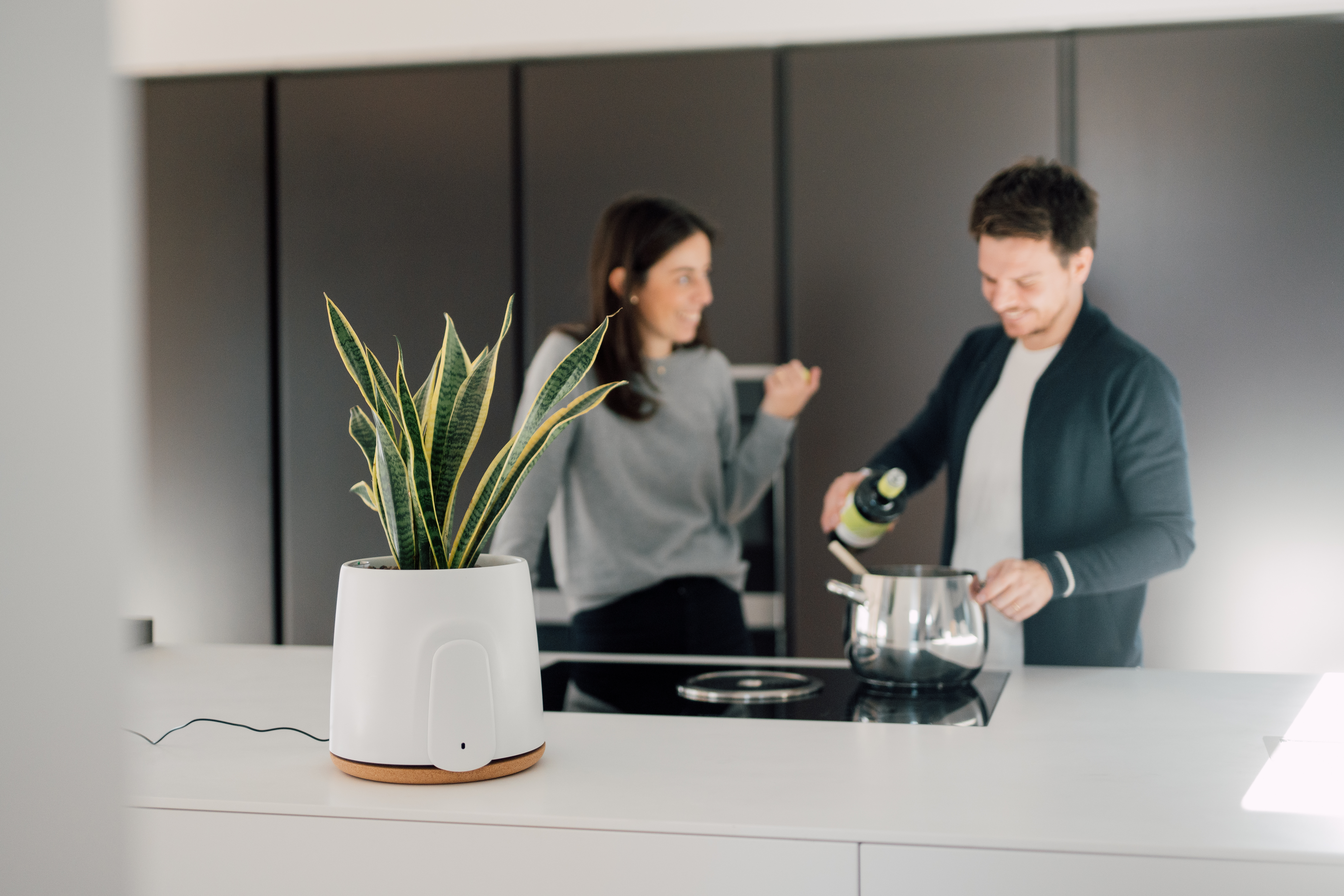 NATEDE Natural Air Purifier: a biophilic air purifier that improves the air purification power of real plants and combines it with an elegant yet striking design and sophisticated technology (Air Quality sensors and connectivity with both our “VITESY HUB” Mobile App and a browser-based Dashboard as control tools).