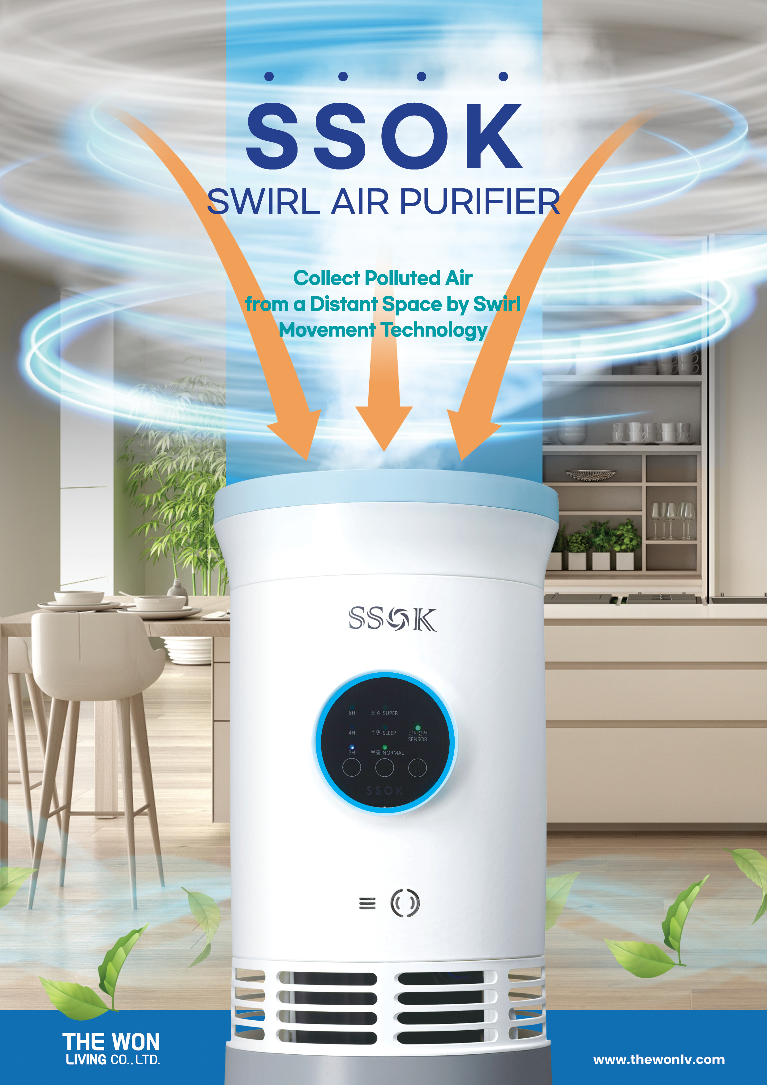 THE WON LIVING is a manufacturing company that directly develops and produces innovative home appliances that increase the value of life and give happiness to consumers. In particular, our whirlwind air purifier SSOK is an innovative product with patented technology that quickly sucks in air pollutants emitted by pets or kitchens before they spread to the space and completely purifies them with a triple filter system.