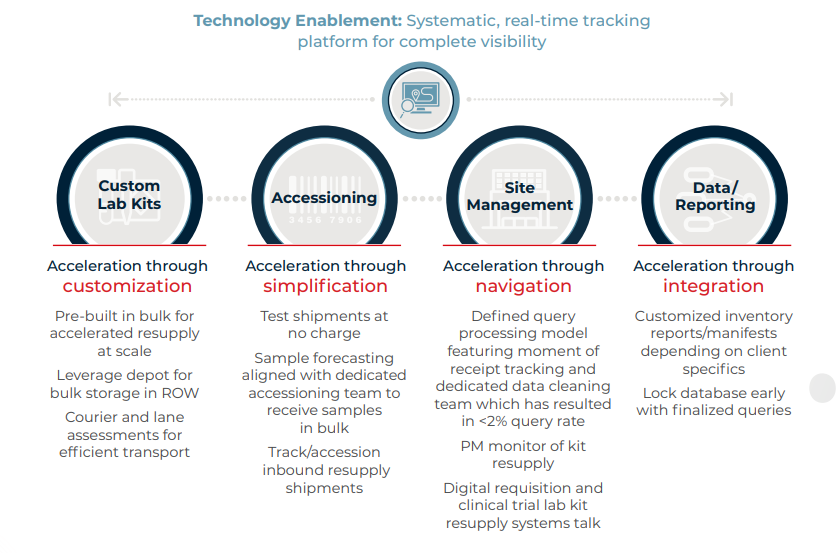 A central lab model for vaccine studies: custom kit build/resupply, global testing, real-time sample tracking, and data management.