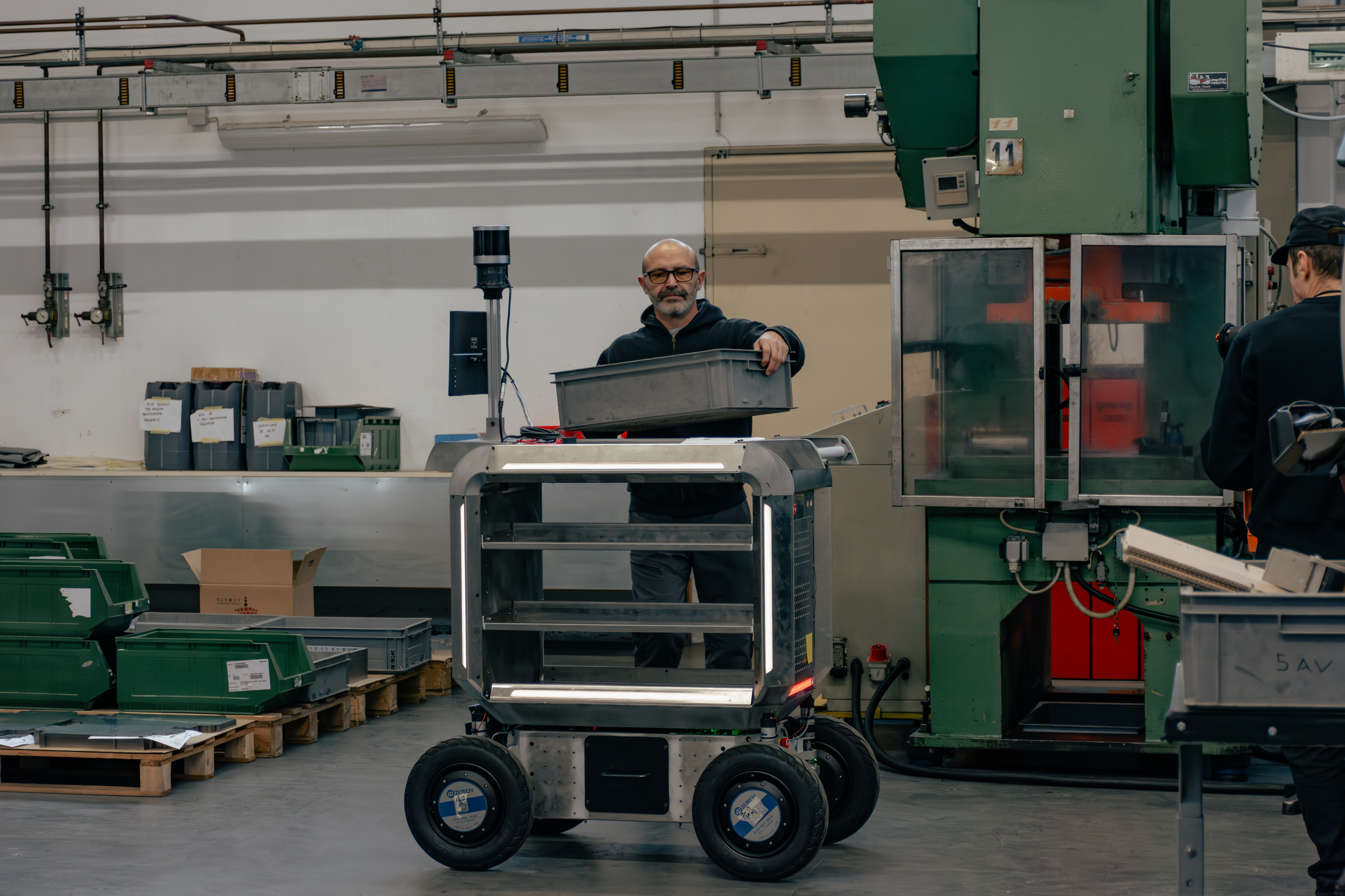 - il trasporto di materiali e raccolta dati sotto forma di "milk-run" (missioni a più destinazioni) dal magazzino verso le aree e linee di produzione - anche in outdoor;