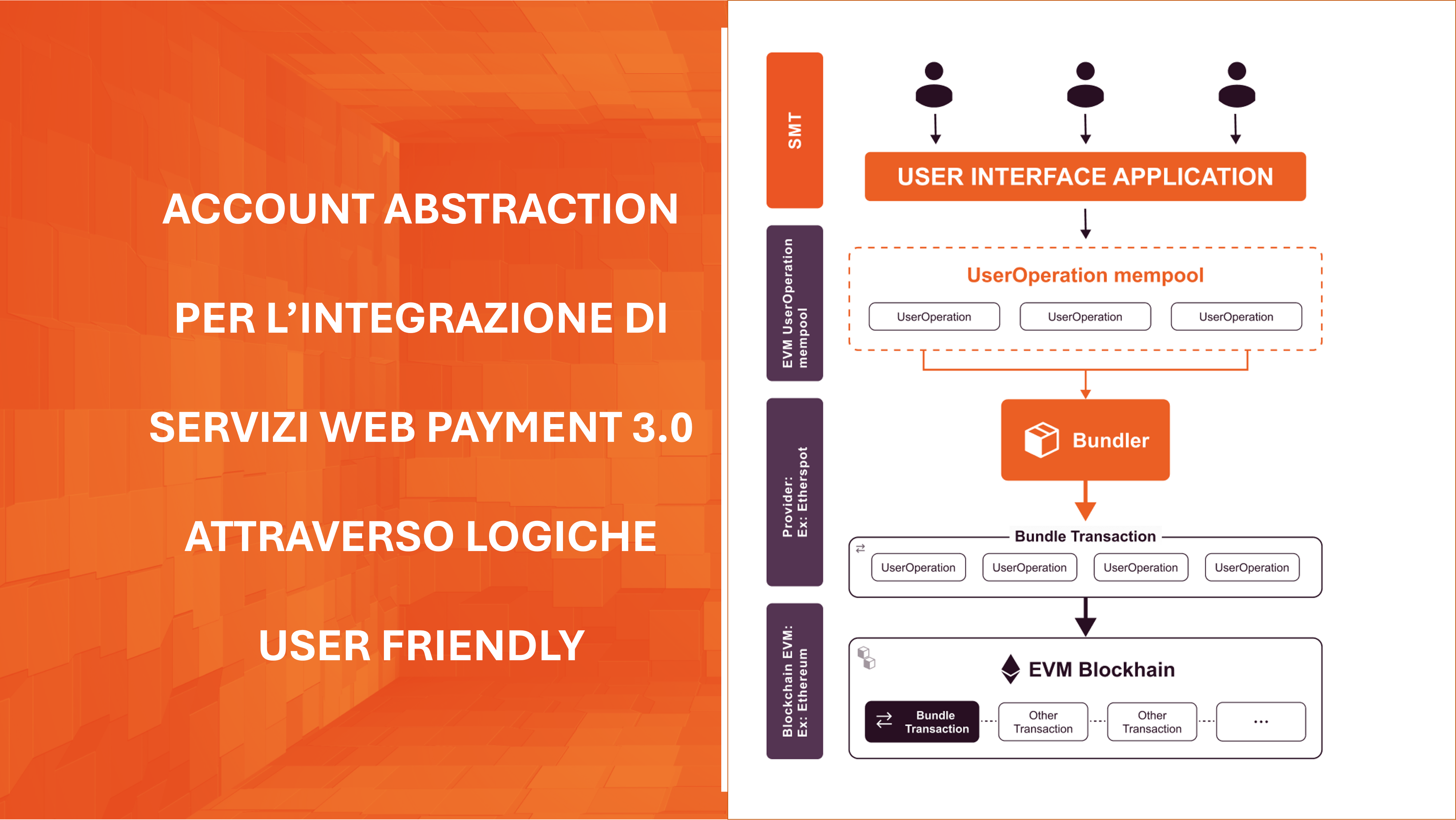 Soluzione Innovativa di Account Abstraction per Integrazione Web2-Web3: personalizzazione e rilascio in produzione di una piattaforma rivoluzionaria che utilizza la tecnologia di Account Abstraction per facilitare l’integrazione tra il Web tradizionale (Web2) e le tecnologie Blockchain (Web3). Questo prodotto permette agli utenti di interagire con le applicazioni blockchain in modo semplice e intuitivo, rimuovendo le complessità tecniche tipiche del Web3. Con l’Account Abstraction, gli utenti possono effettuare transazioni, gestire NFT e accedere a servizi decentralizzati usando interfacce familiari del Web2, senza la necessità di una profonda conoscenza della blockchain. Questa soluzione è ideale per aziende che vogliono incorporare elementi Web3 nelle loro offerte esistenti, migliorando l’esperienza utente e allargando il proprio mercato.