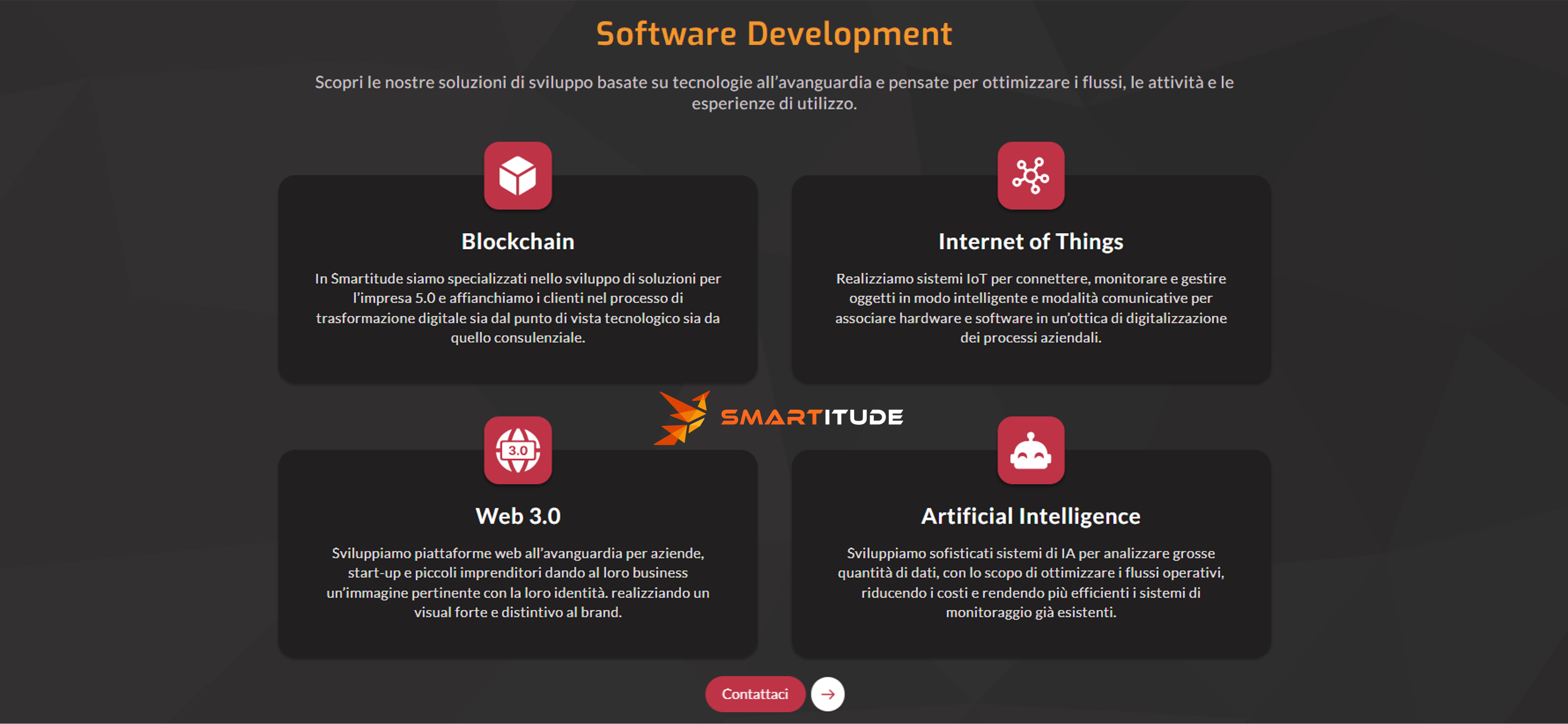 Il servizio di sviluppo software di infrastrutture innovative IT di Smartitude prevede un approccio integrato che propone un percorso di workshop finalizzato a definire le esigenze del cliente per la migliore realizzazione del progetto tecnologico e stabilire requisiti, obiettivi tecnici e tempistiche dettagliate.