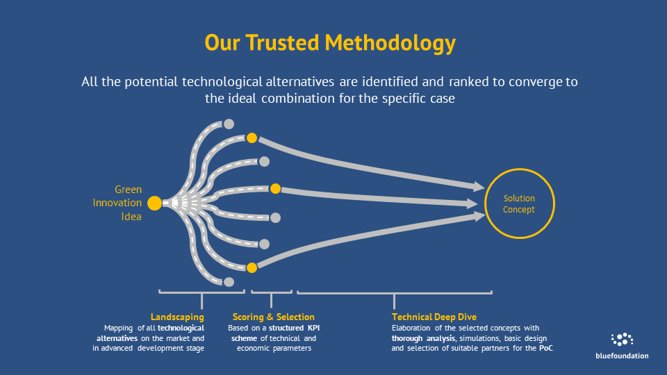 Bluefoundation is an engineering company focused on the development of business decarbonization and sustainable transition projects. The company, established to respond to the growing need to identify effective solutions for the reduction of Green House Gas Emissions, operates globally for the major industrial multinationals. The working method includes the scouting of innovative technologies, the creation of digital twin models for the simulation of the optimal sustainability scenarios (economic, technical and environmental) converging in a roadmap of actions supported by business models and identification of the best technological partners for the implementation. Bluefoundation has also developed Corallo, a collaborative platform enabling SMEs' energy transition, and supply chain leaders reduce their scope 3 with confidence. A win-win solution.