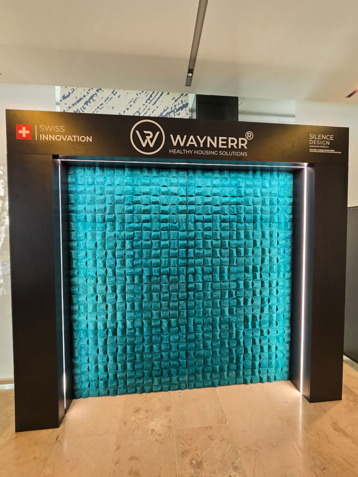 The journey behind this innovative technology began with a curiosity: how can we unlock new applications for one of nature’s most remarkable materials – collagen? This clean, natural biopolymer exists in many forms across the planet, serving as a vital structural element in nature. Traditionally, collagen has been used in the food and pharmaceutical industries. However, during the COVID-19 pandemic, our team explored its potential as a sustainable alternative to plastic in personal protective masks and achieved promising results. Driven by this success, we set out on a new mission: to rethink the concept of healthy living spaces. What if our homes could be built not just with natural materials, but also support better air quality and acoustic comfort? Collagen, with its ability to form durable and sustainable structures, became the cornerstone of our solution – offering an eco-conscious alternative to synthetic materials derived from plastic and oil. After countless trials, we developed a breakthrough technology that allows us to transform this biopolymer into porous structures with outstanding acoustic performance. Even more exciting, these structures can be customized in texture, color, and even infused with natural scents – making them ideal for interior design. This discovery paves the way for industries to embrace healthier, more sustainable materials that enhance healthy living. WAYNERR® acoustic interior panels do more than improve sound – they act as stationary air conditioners, regulate the microclimate, elevate visual aesthetics, and enrich the overall sensory experience of a space. It’s a new era of interior living, where nature meets comfort, and sustainability becomes a lifestyle. WAYNERR® panels are integral to the „Healthy Housing Solutions“ initiative, which enhances comfort, health, and functionality in living spaces. Each panel provides eight essential benefits, including: 1\. EXCEPTIONAL ACOUSTICS: Maximum sound absorption with just 4 cm thickness, ensuring impeccable acoustic comfort. 2\. IMPROVED MICROCLIMATE: Porous structure regulates humidity, contributing to a healthier indoor environment. 3\. FIRE RESISTANCE: Panels are fire-resistant, offering increased safety. 4\. THERMAL INSULATION: Effective heat regulation improves energy efficiency. 5\. SUSTAINABLE PRODUCTION: Made from recycled leather with eco-friendly technology. 6\. DESIGN VERSATILITY: Available in diverse textures, colors, and finishes to meet varying design needs. 7\. DURABILITY: Robust materials ensure a long lifespan. 8\. SCENT INTEGRATION: Enables a completely new sensory experience, making scent as integral as color and texture in design.