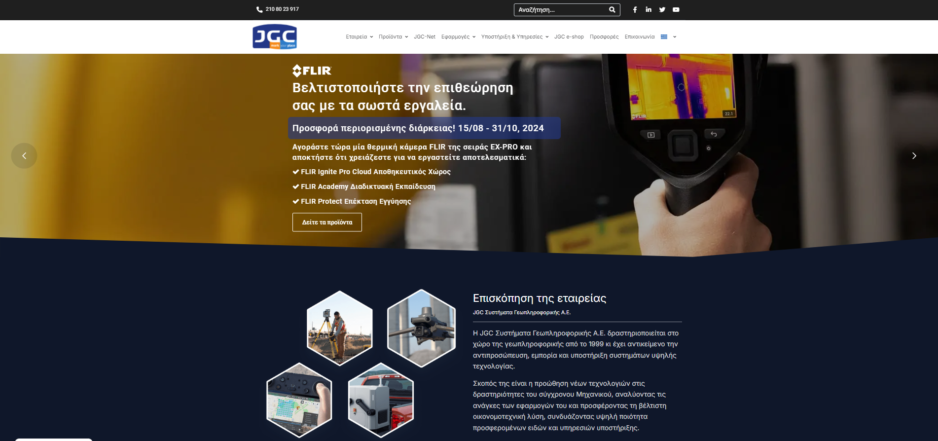 JGC – GEOINFORMATION SYSTEMS S.A. has been active in the field of geoinformations since 1999 and has as its object the representation, sales and support of high technology systems. Its purpose is to promote new technologies in the activities of modern Engineering, analyzing the needs of its applications and offering the best financial and technical solution, combining high quality offered items and support services.