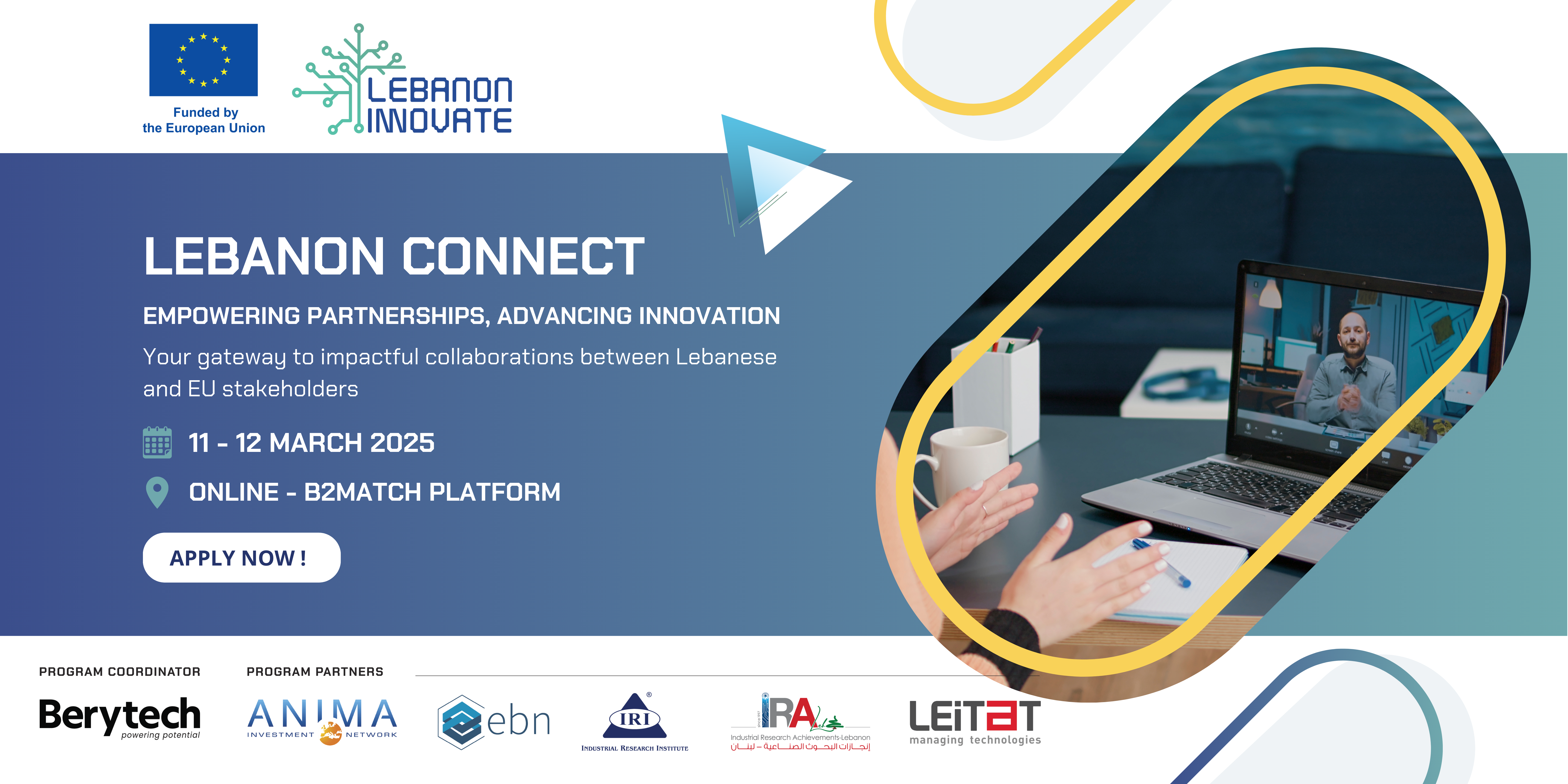 Lebanon Connect fosters collaboration between Lebanese and EU stakeholders by bridging the gap between academia, industry, researchers, and innovators. This initiative creates strong partnerships to advance research, technology, and innovation.