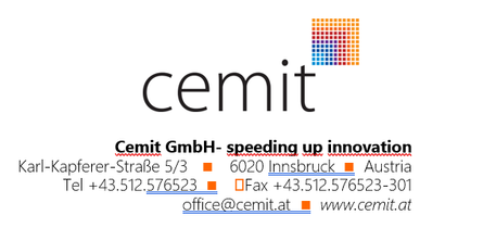 Cemit GmbH in Innsbruck is a service company and has been active in the field of R&D funding and innovation consulting as well as project management for many years. As a result, Cemit GmbH has extensive experience in the application and management of regional, national and EU-wide funding projects, including access to a Europe-wide network of funding bodies and project partners.