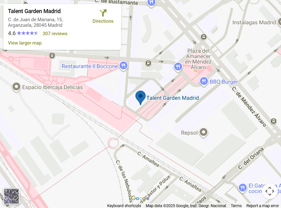 Madrid Connect 2025 on-site matchmaking will take place at Talent Garden Madrid, a modern and functional space in the heart of the city, just minutes from the Atocha transport hub and the historic center.