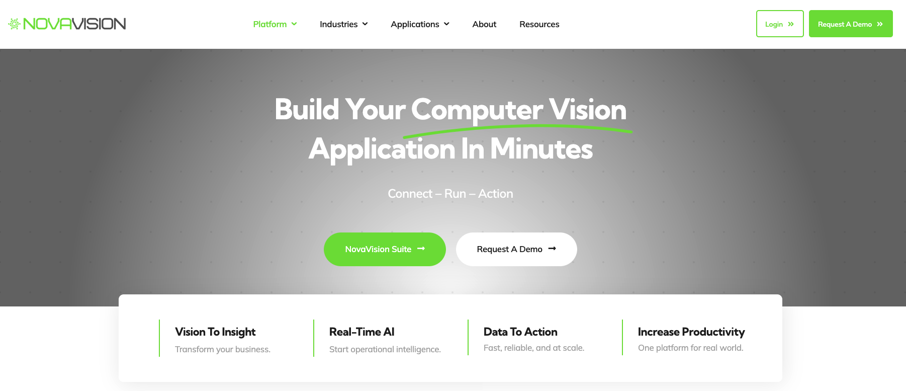 NovaVision AI Suite is the all-in-one computer vision platform that lets you build, deploy, and scale AI vision solutions faster and more efficiently than ever.