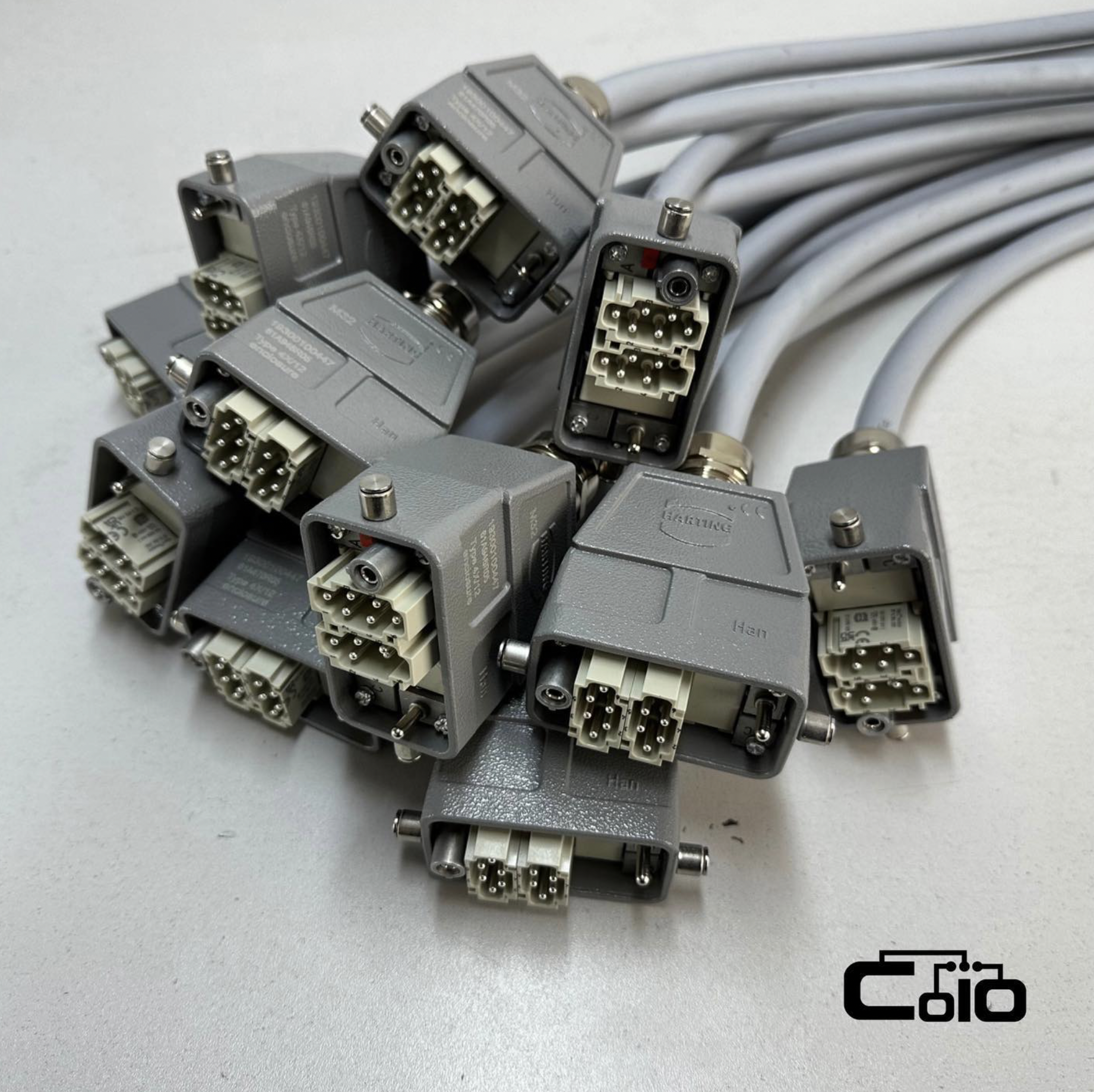 We produce Han®-compatible industrial cable assemblies designed for demanding applications in machinery, automation, and control systems. Using Harting-type connectors, our harnesses ensure reliable electrical contact, quick installation, and resistance to vibration and oil exposure. Each assembly is tested for continuity, insulation, and pull strength before delivery.