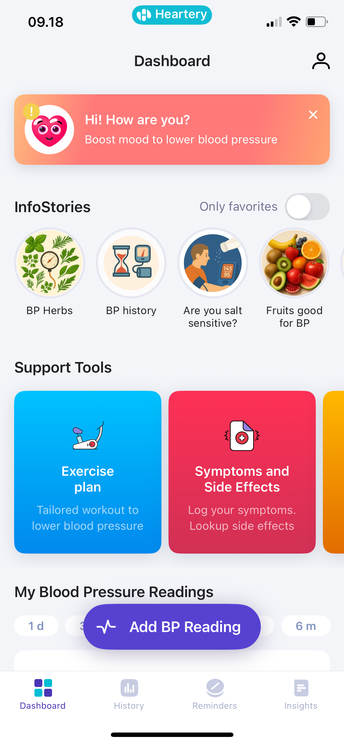 Our flagman app, Heartery, is based on several hundred interviews with hypertensive patients. It provides support tools to most common daily challenges: salt monitor, food safety, exercises to lower blood pressure, adherence assessment, many others. At present, Heartery has over 50K downloads and topped the App Store on search ‘blood pressure‘.