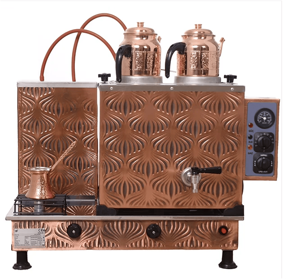 Demasan copper tea boilers combine Turkish tradition with modern technology. Fully automatic, energy-efficient, and available in different sizes, they are ideal for cafes, catering, and hotels.