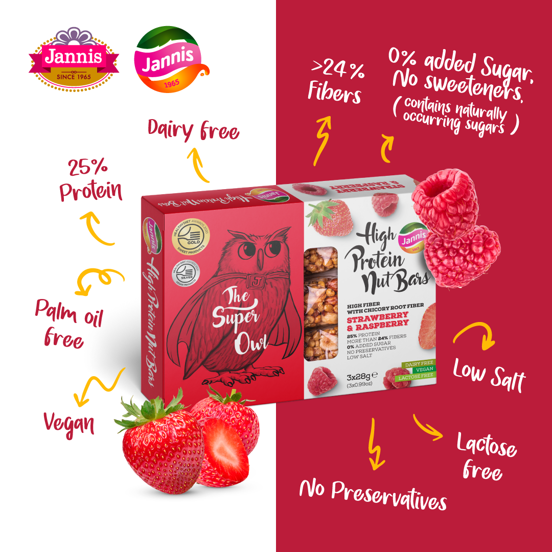 Our protein bars were created by completely removing sugar and replacing it with fiber, without the use of sweeteners. The fiber we selected is the actual extract of chicory root. This established prebiotic provides superior benefits, based on numerous reports from reliable scientists. Products are really rich in protein and fibers, containing over 20% of each. Salt content is very low and no preservatives have been added to any of the products. They are suitable for use by Vegans, lactose & dairy free, super healthy and last but not least… incredibly tasty!