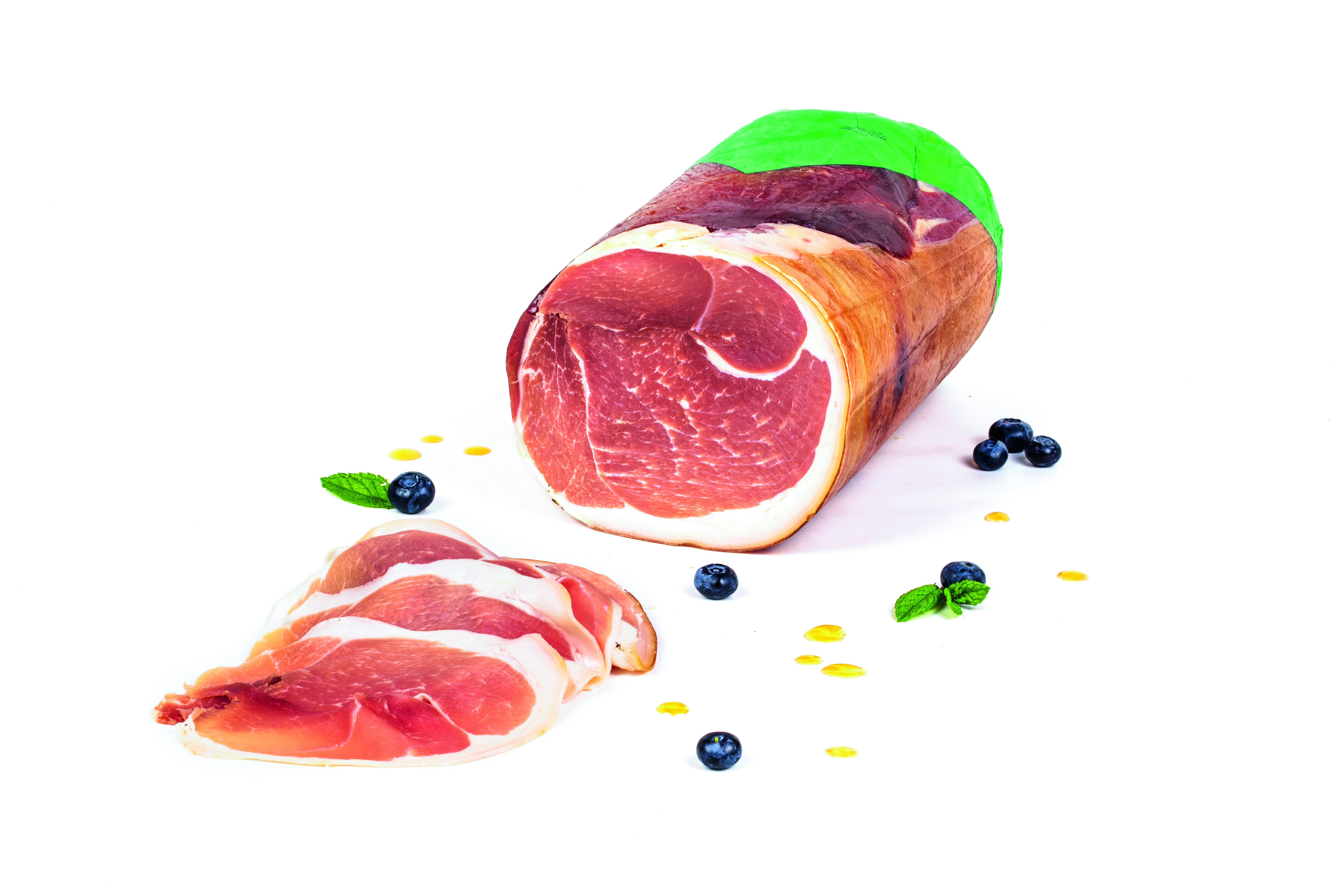 It is a raw ham proposed with or without rind, innovative in shape that allows a homogeneous cut along the entire length and a low rate of waste. It is a seasoned product with a sweet taste.