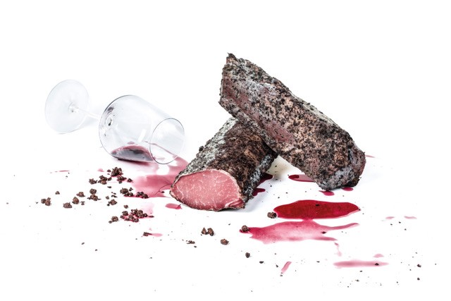 It comes from the heart of the pork loin, spicy and tanned with Barolo wine, seasoned wrapped in marc. With its low salt content, it is an excellent delicatessen to be enjoyed alone or in combination with extra virgin olive oil, lemon and Parmigiano Reggiano flakes. Its particularly delicate flavor goes well with the sweet-sour fruit: try it in bundle with pomegranate inside, or with small fruits.