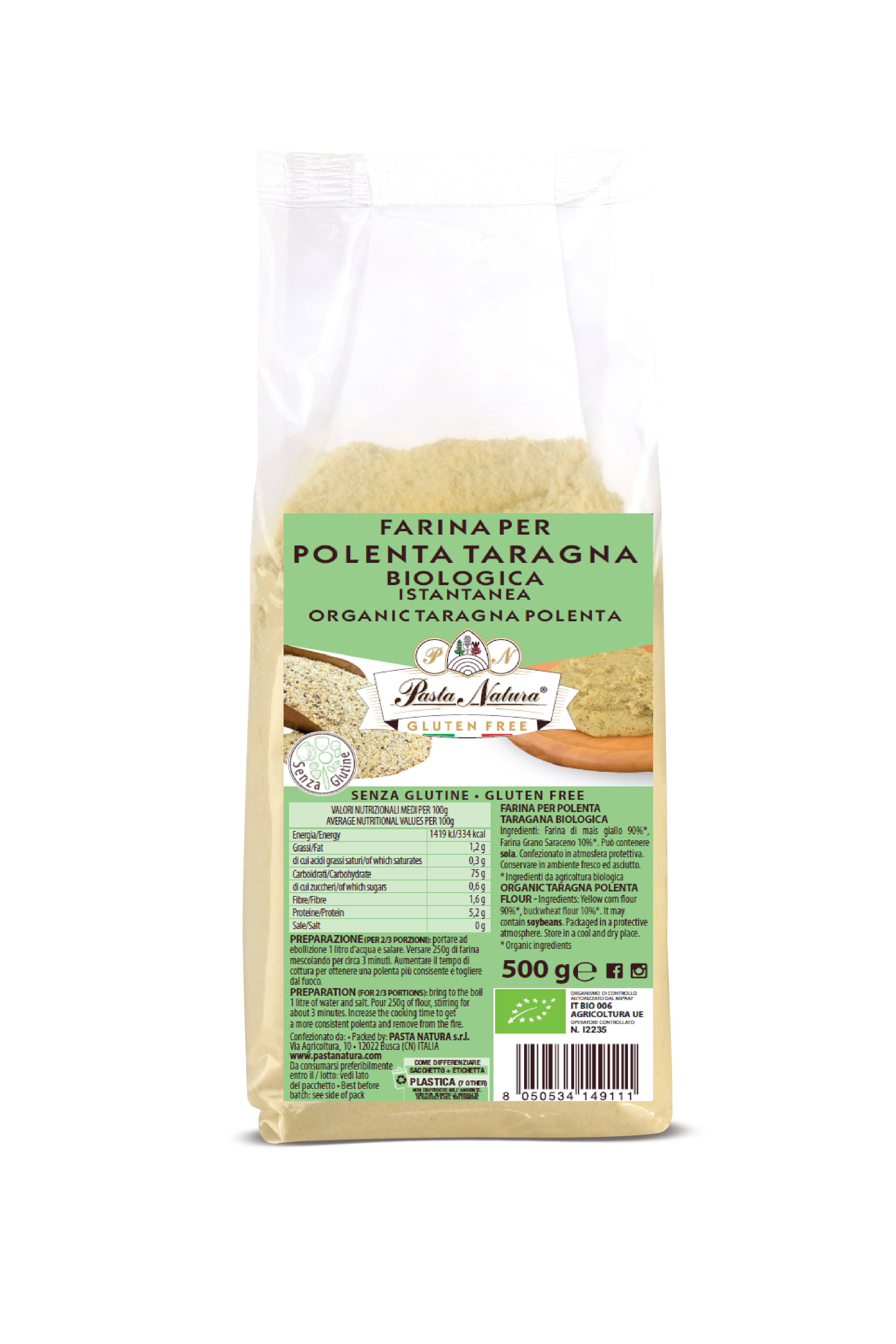 GLUTEN FREE FLOURS AND POLENTA: obtained from natural ingredients
