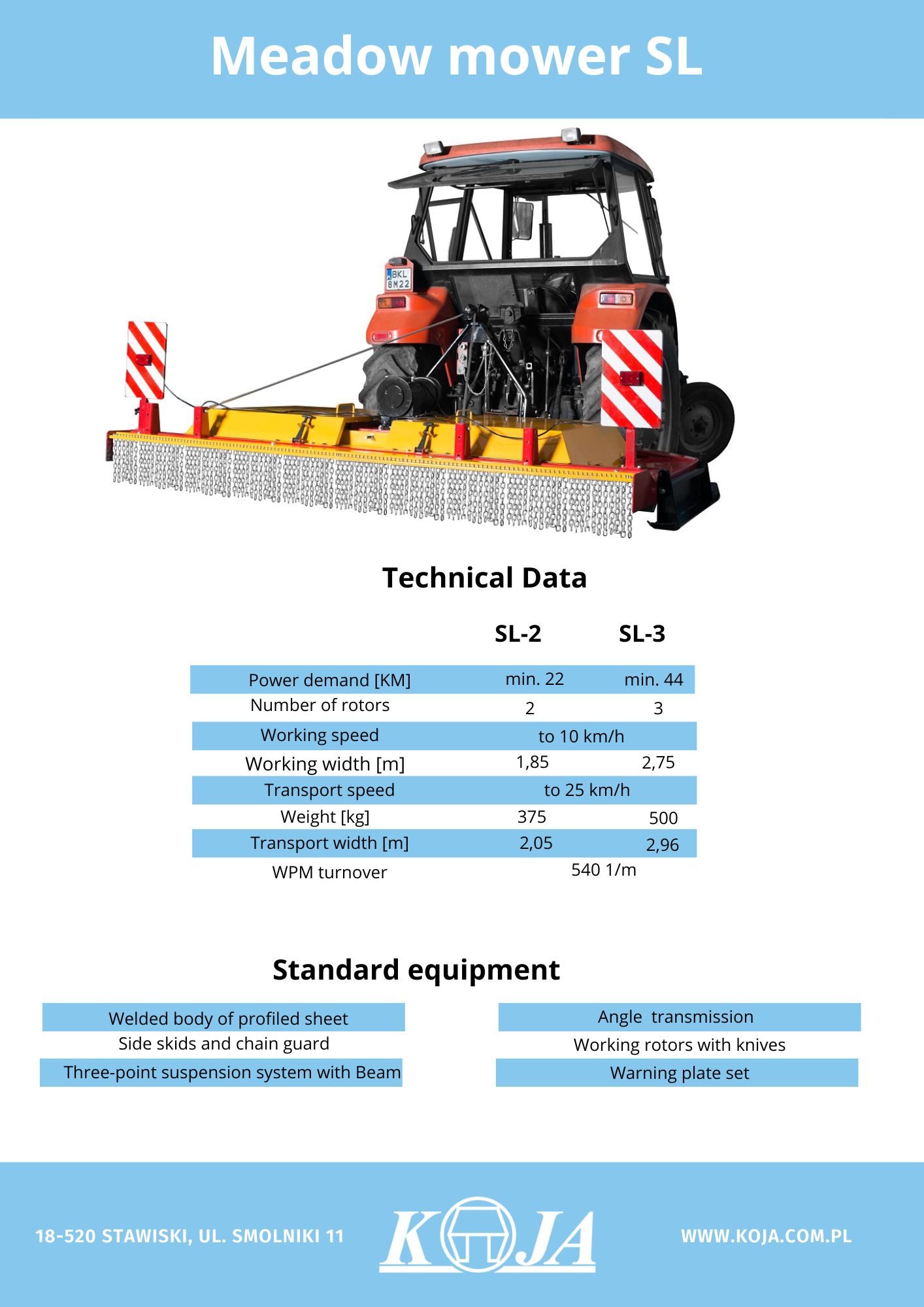 SL-2-working width 185 cm, 2 rotors, weight 375 kg, for tractors from 22 kW.