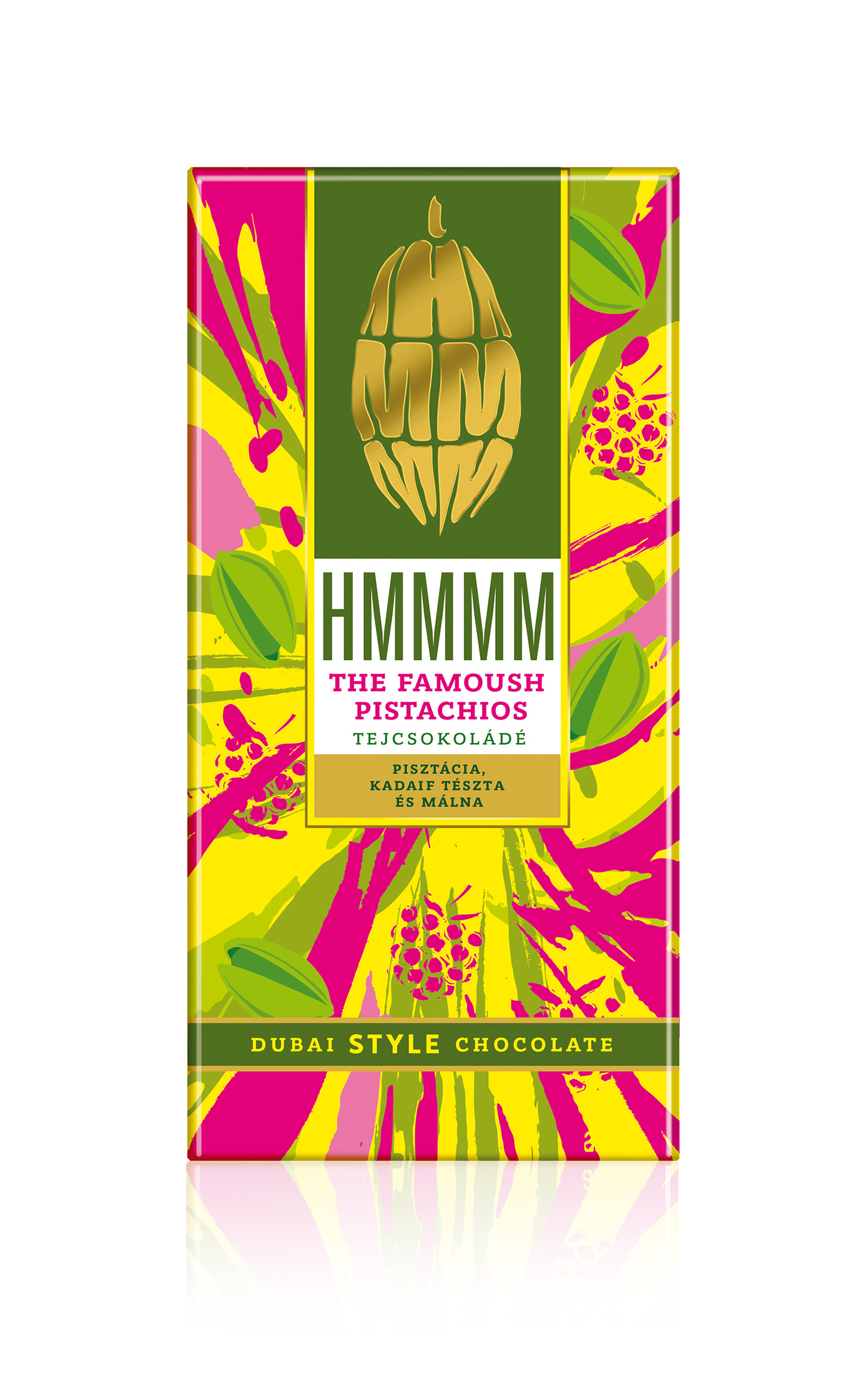Luxurious Colombian milk chocolate with pistachio paste, kadaif, and raspberry.