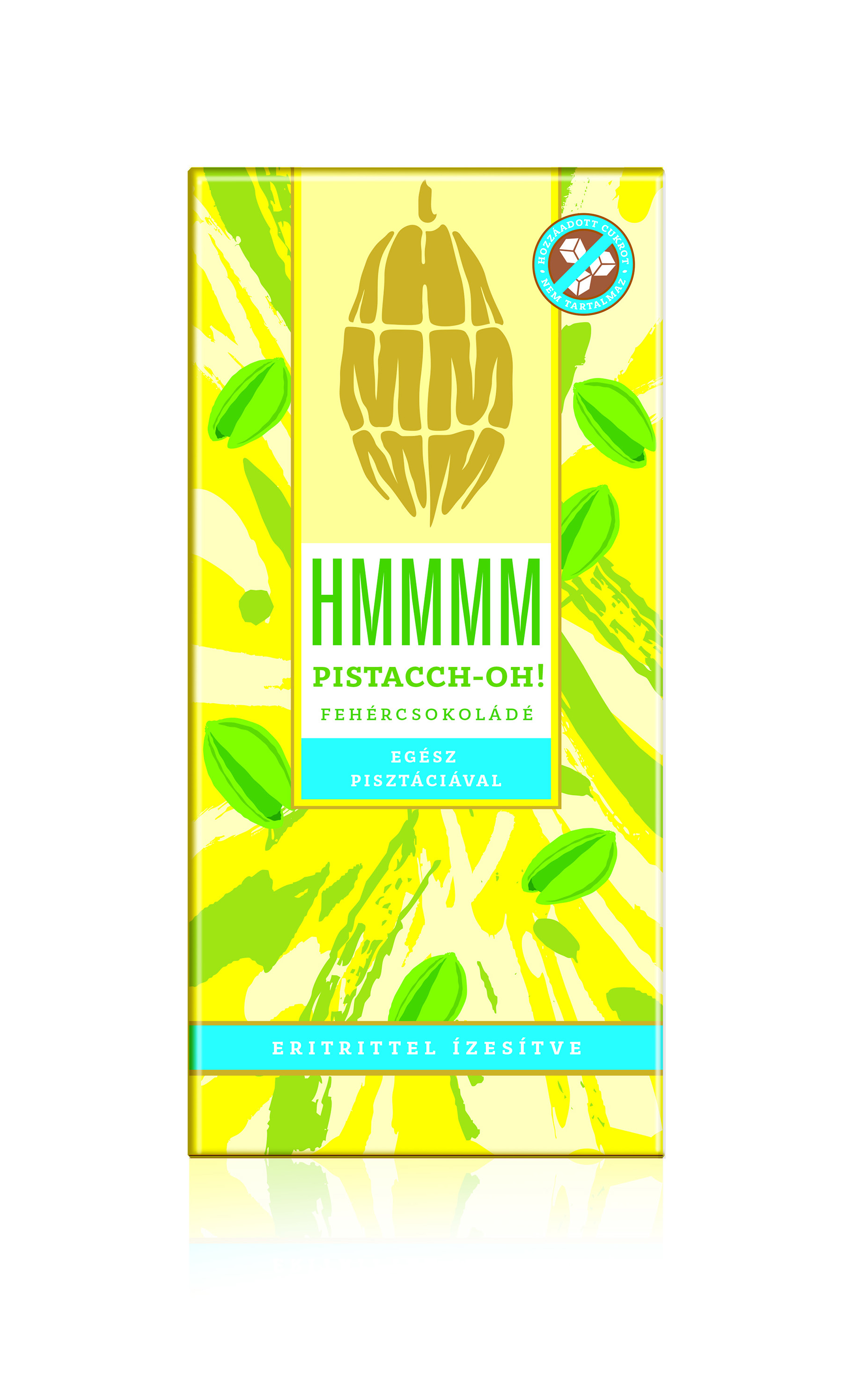 Sugar-free white chocolate with pistachio cream and whole pistachios.