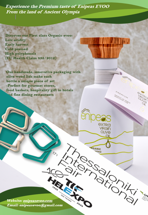 Enipeas EVOO is a family-owned Greek company dedicated to producing premium organic extra virgin olive oil. Naturally rich in polyphenols and certified under EU health claims, our olive oil stands out for its exceptional quality, flavor, and health benefits. With numerous awards for quality, polyphenol content, and elegant design, Enipeas EVOO brings the essence of Greek tradition to the global market. Presented in luxury packaging, it is the ideal choice for gourmet retail, fine dining, and exclusive corporate gifting.