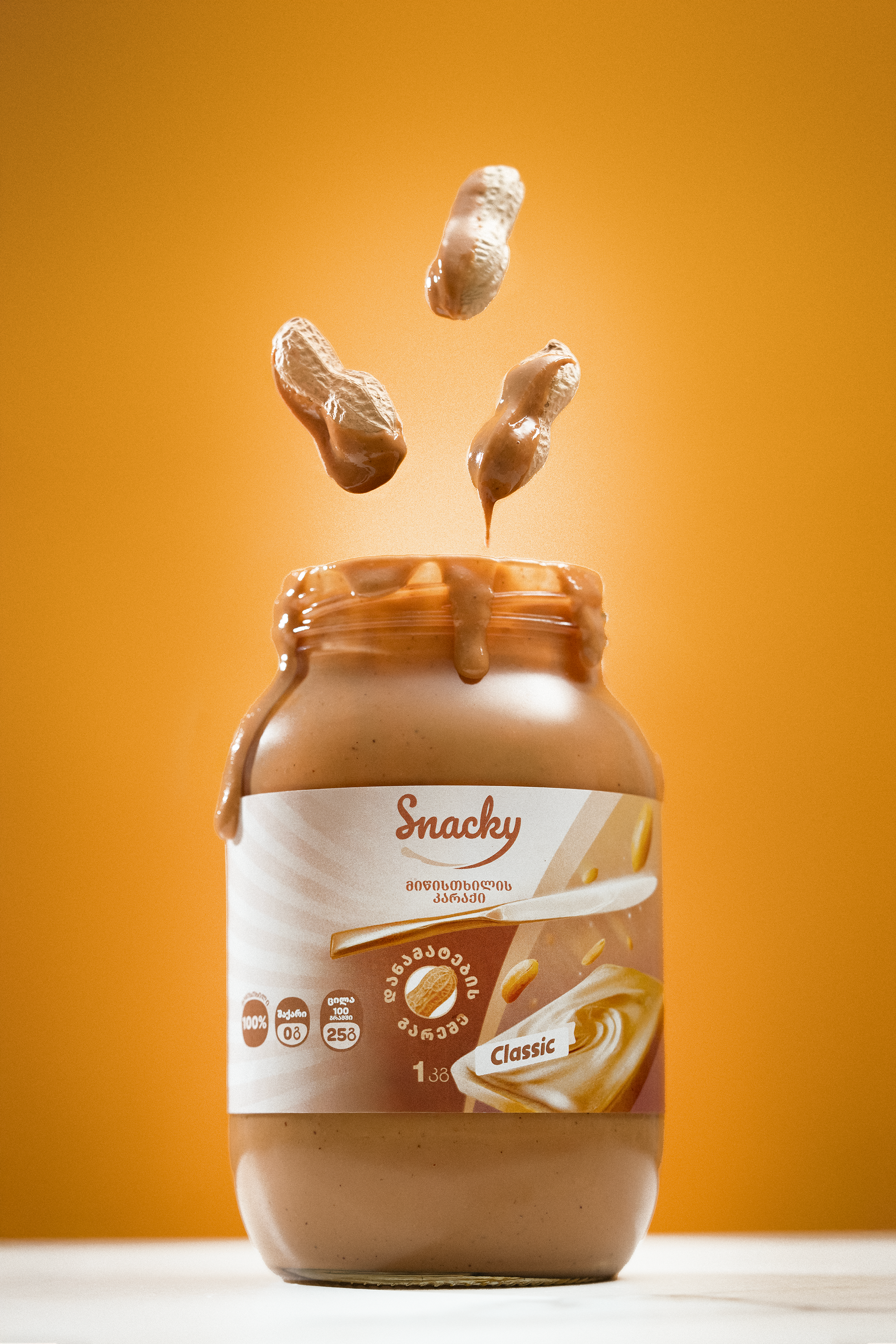 Snacky LLC is the leading producer of 100% natural peanut butter in Georgia. Founded with a mission to promote healthy, additive-free nutrition, we specialize in roasting, grinding, and packaging high-quality peanuts into premium spreads. Our products are available in supermarkets, gyms, agro markets, and online platforms across the country.