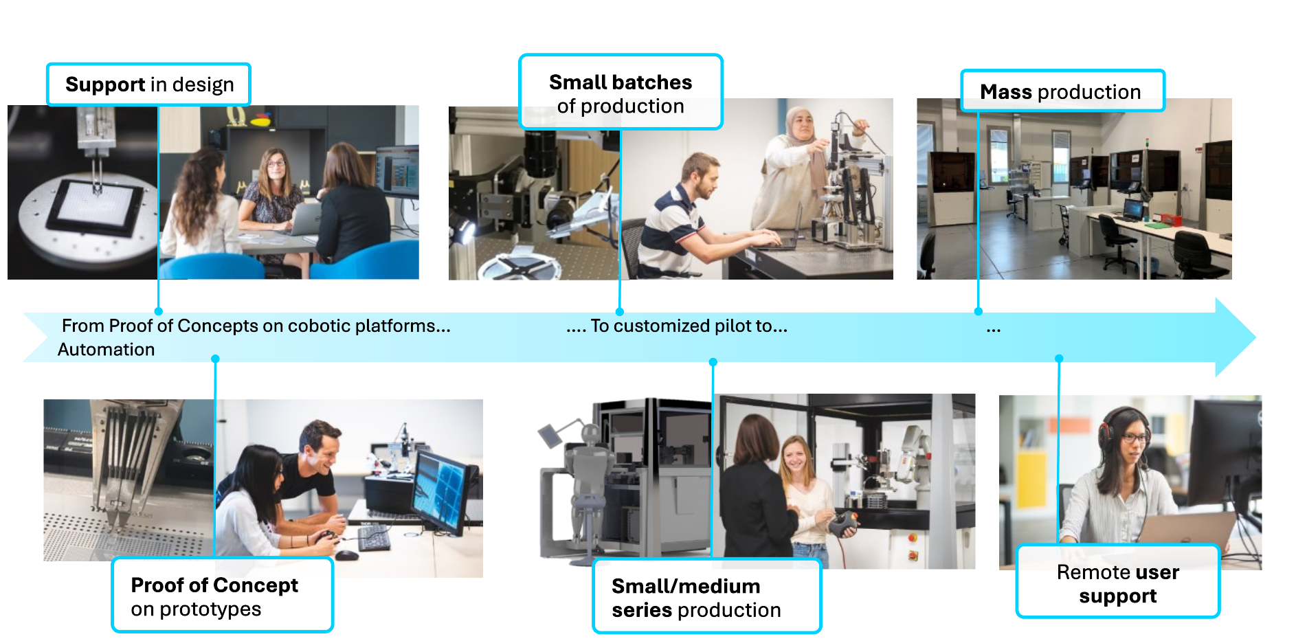 Get processes & equipment solutions in adequation with your current and future needs, (thanks to our upgradeable and modular robotic platforms)