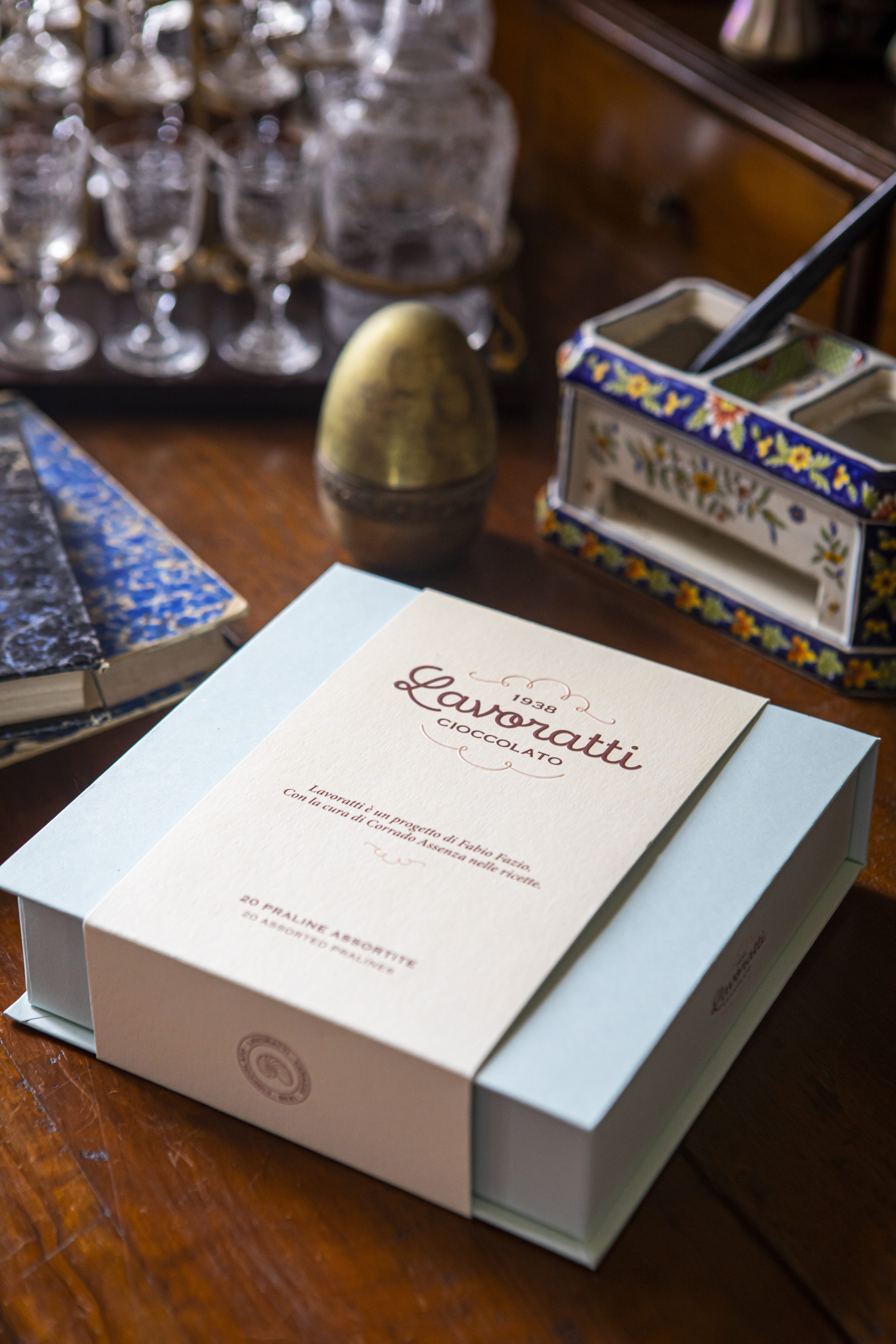Since we don’t use food colourings, our bonbons are numbered, and a dedicated key inside the box will tell you the flavour. The proportions of the bonbon’s sides also respect the golden ratio, and a Nautilus – the company’s symbol – is stamped on their surface.