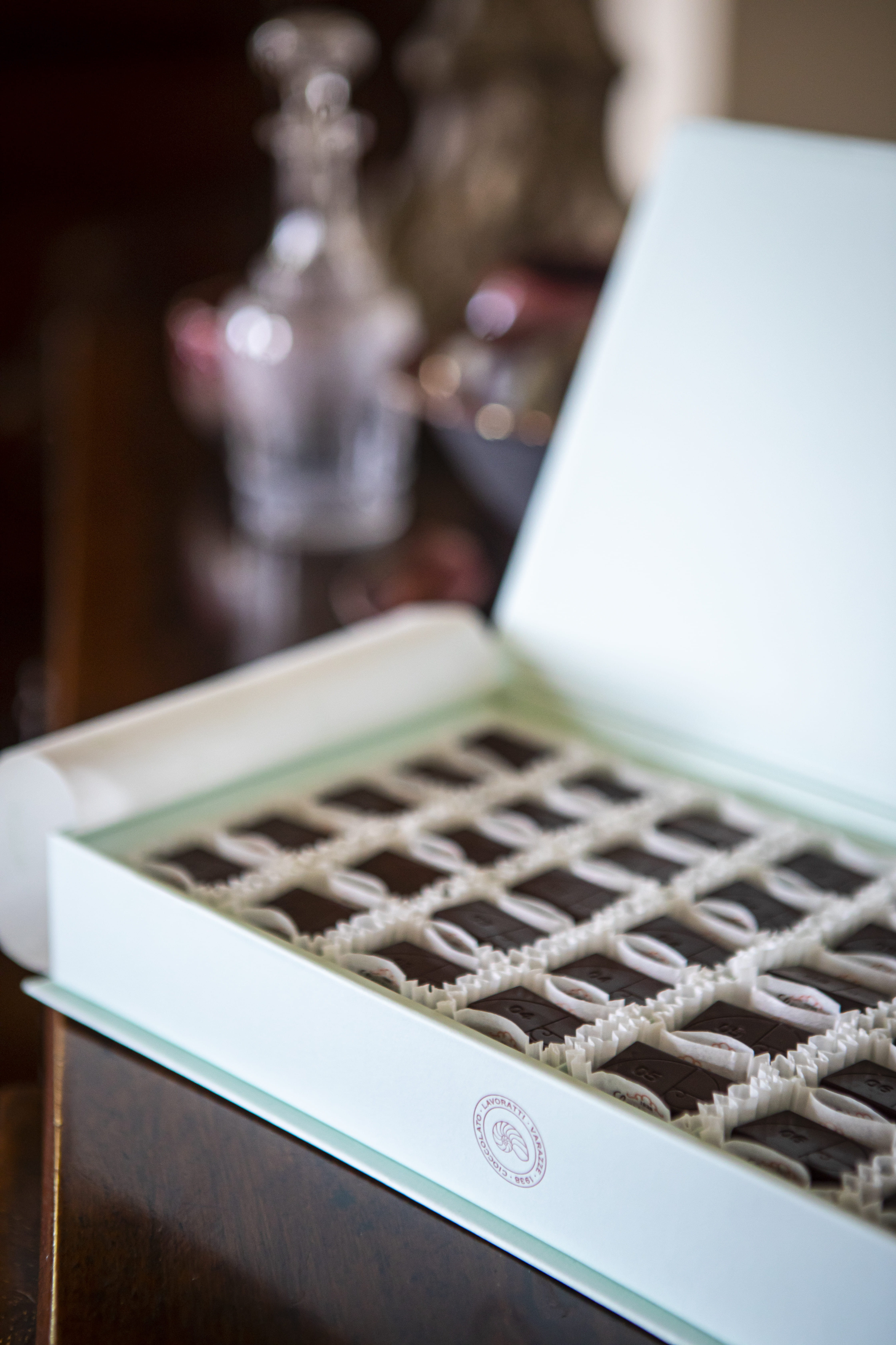 Since we don’t use food colourings, our bonbons are numbered, and a dedicated key inside the box will tell you the flavour. The proportions of the bonbon’s sides also respect the golden ratio, and a Nautilus – the company’s symbol – is stamped on their surface.