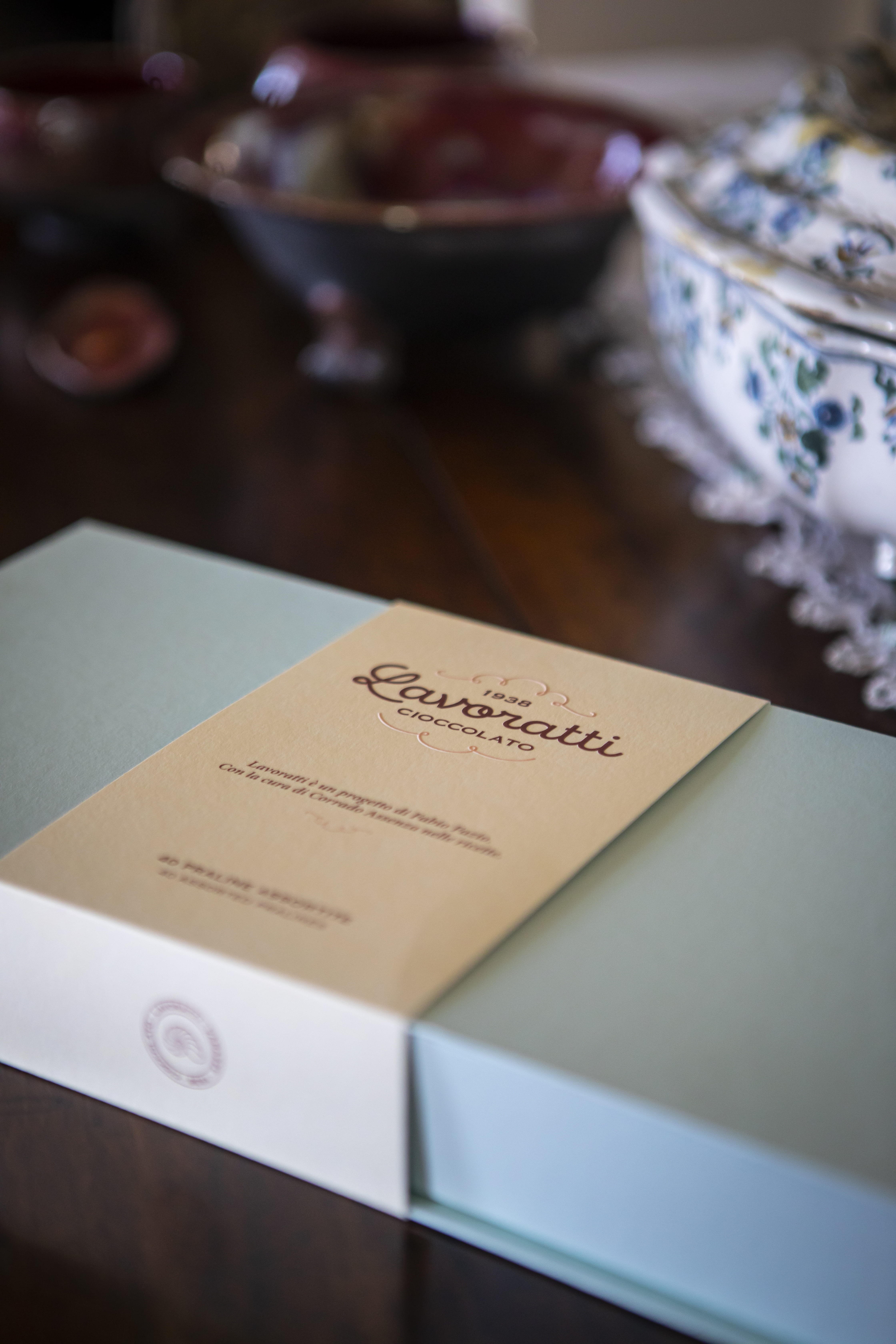 Since we don’t use food colourings, our bonbons are numbered, and a dedicated key inside the box will tell you the flavour. The proportions of the bonbon’s sides also respect the golden ratio, and a Nautilus – the company’s symbol – is stamped on their surface.