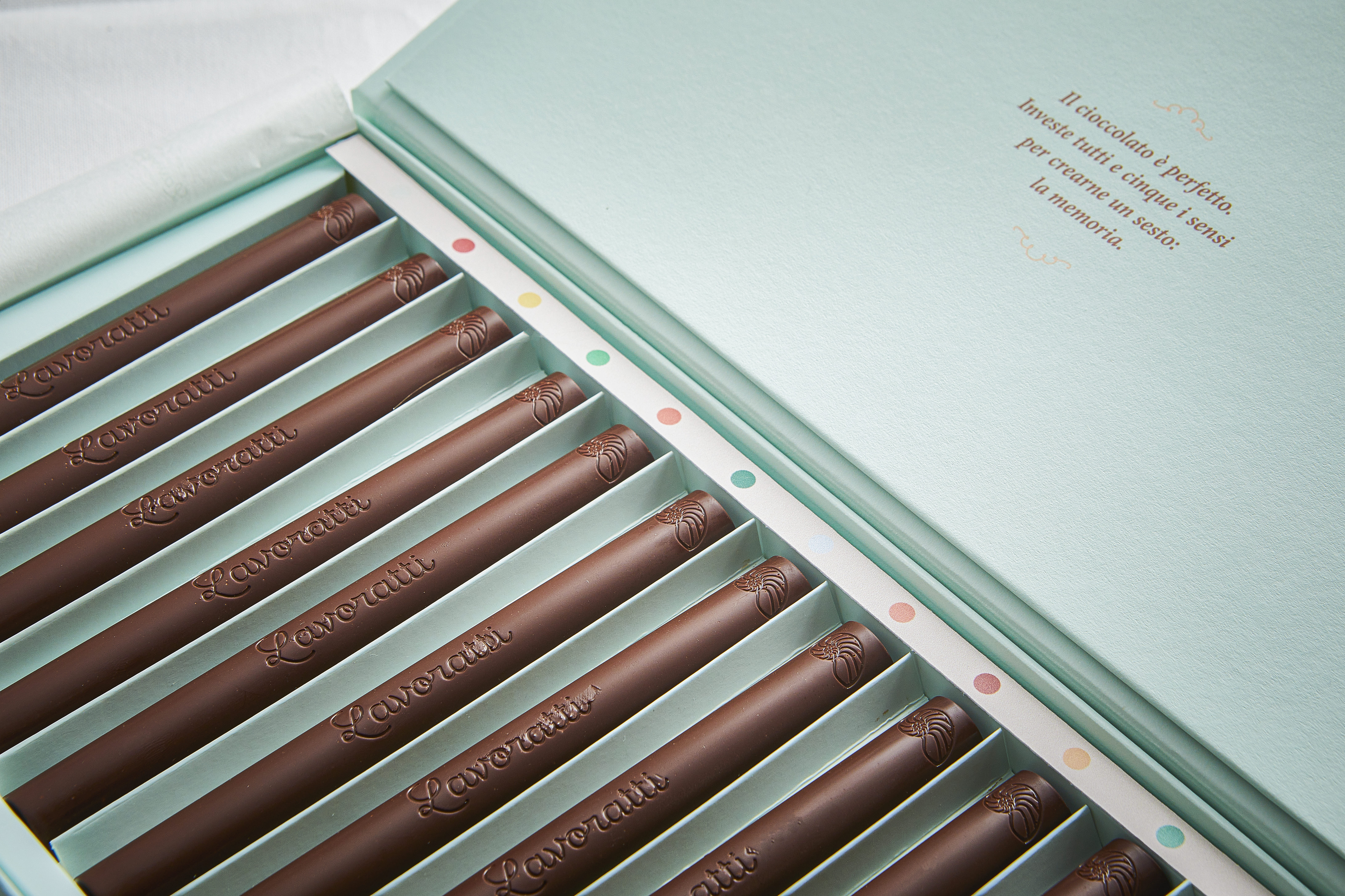 Lavoratti offers 12 chocolate pencils, no food colourings here, either. What colours our pencils is the freshness of our fillings, with a surprising range of flavours.