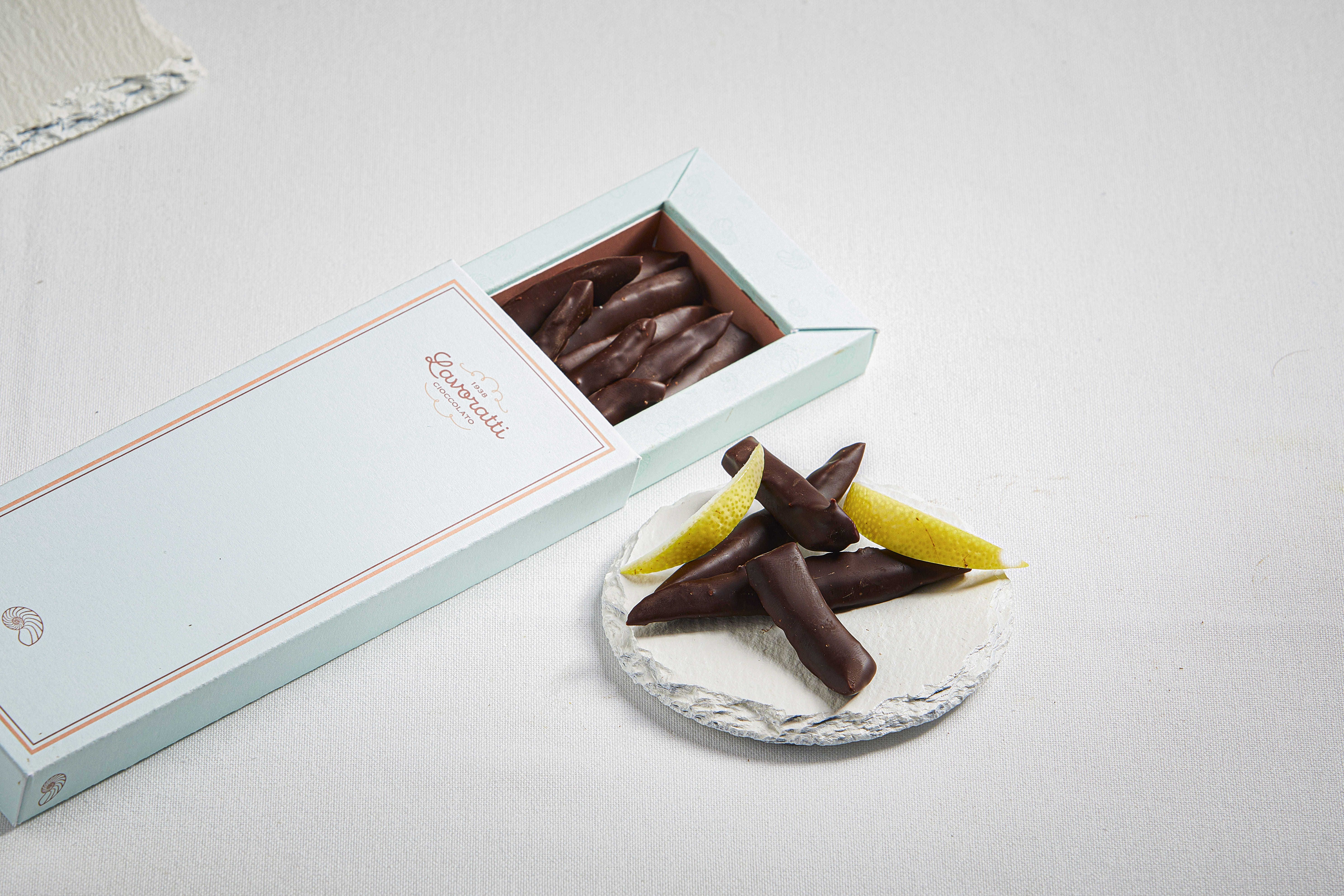 Ingredients: sicilian lemon rinds, pure cocoa paste, cocoa butter, sugar, emulsifier (non-OGM soy lecithin).