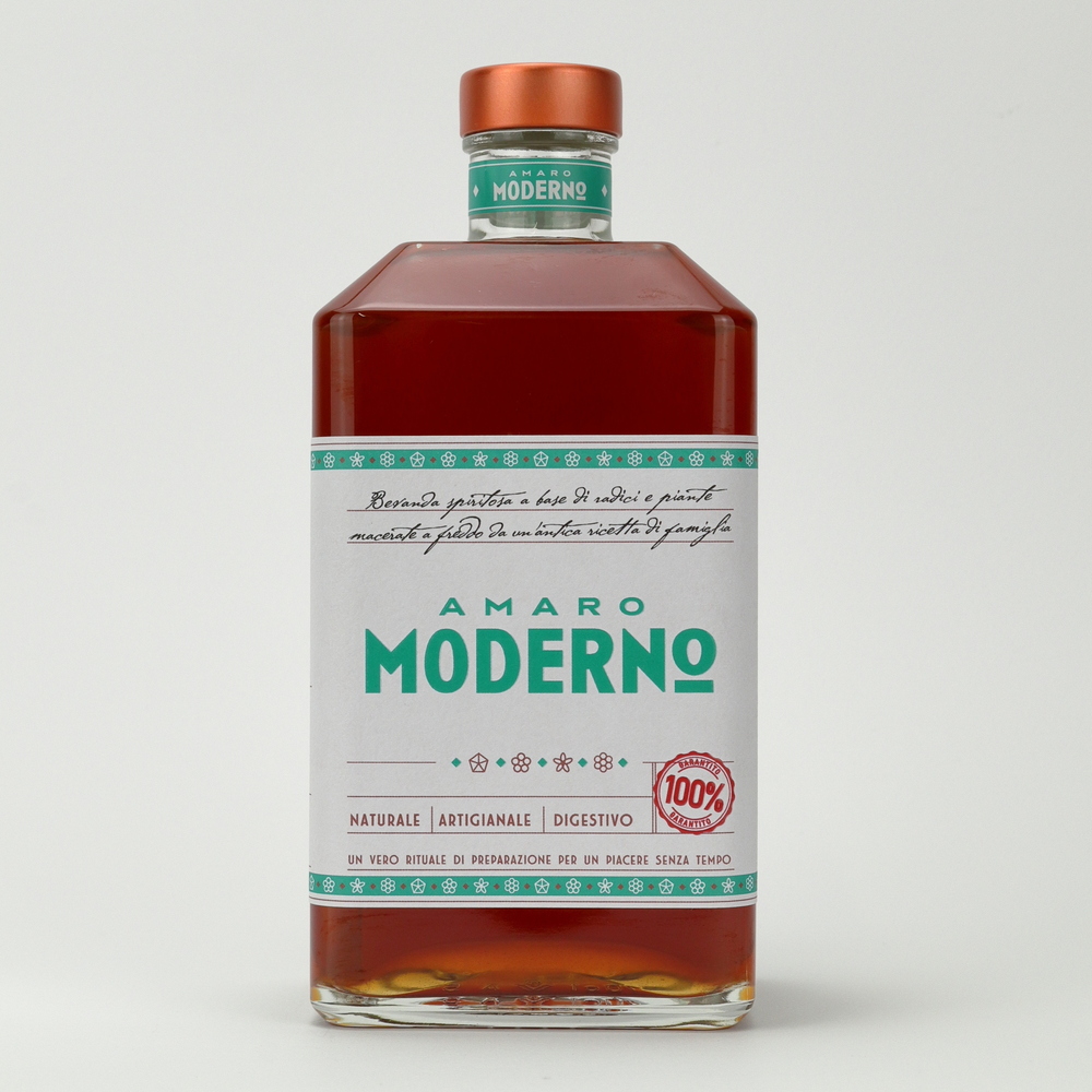 Amaro Moderno is proposed in its uniqueness as an elegant and pleasantly bitter liqueur, with pronounced citrus and root notes.