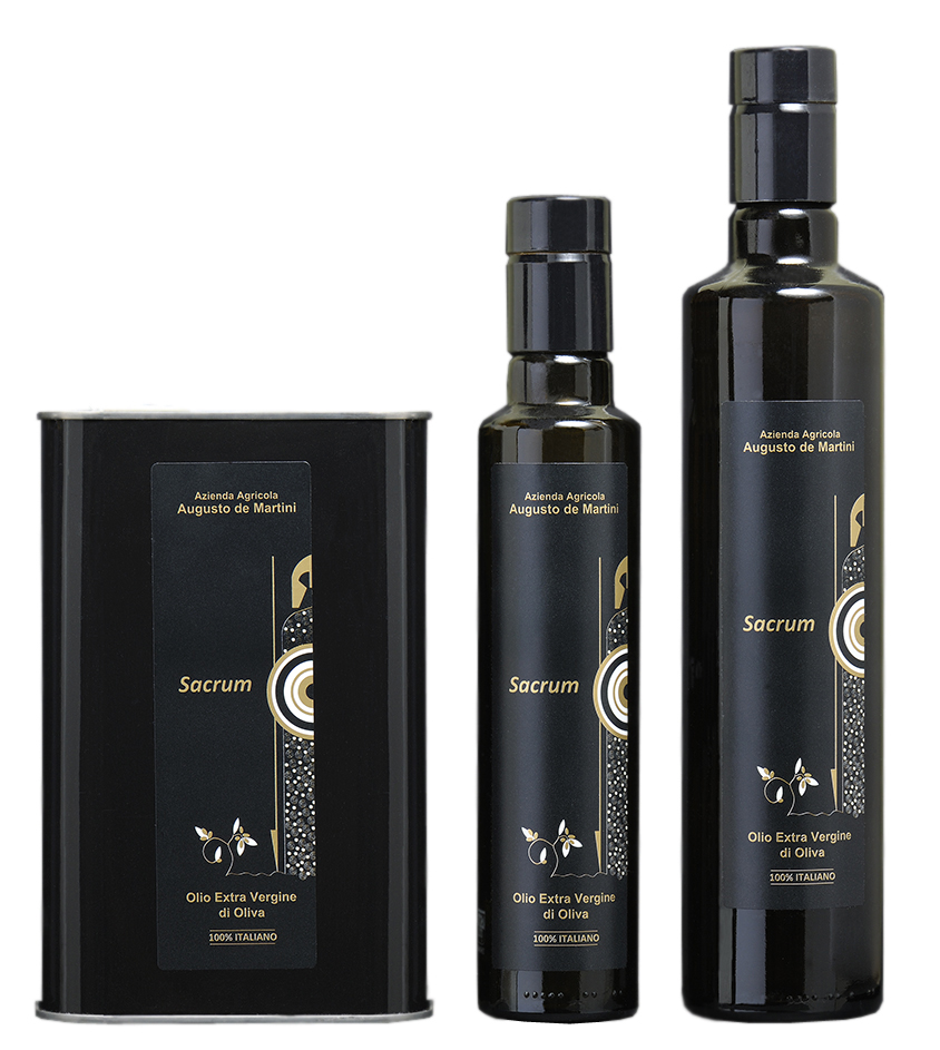 Sacrum Blend represents the final outcome of blending various olive varieties grown on the company's estate: Frantoio, Leccino, Leccio del Corno, Coratina,Racioppella, Ortolana, and Ortice.