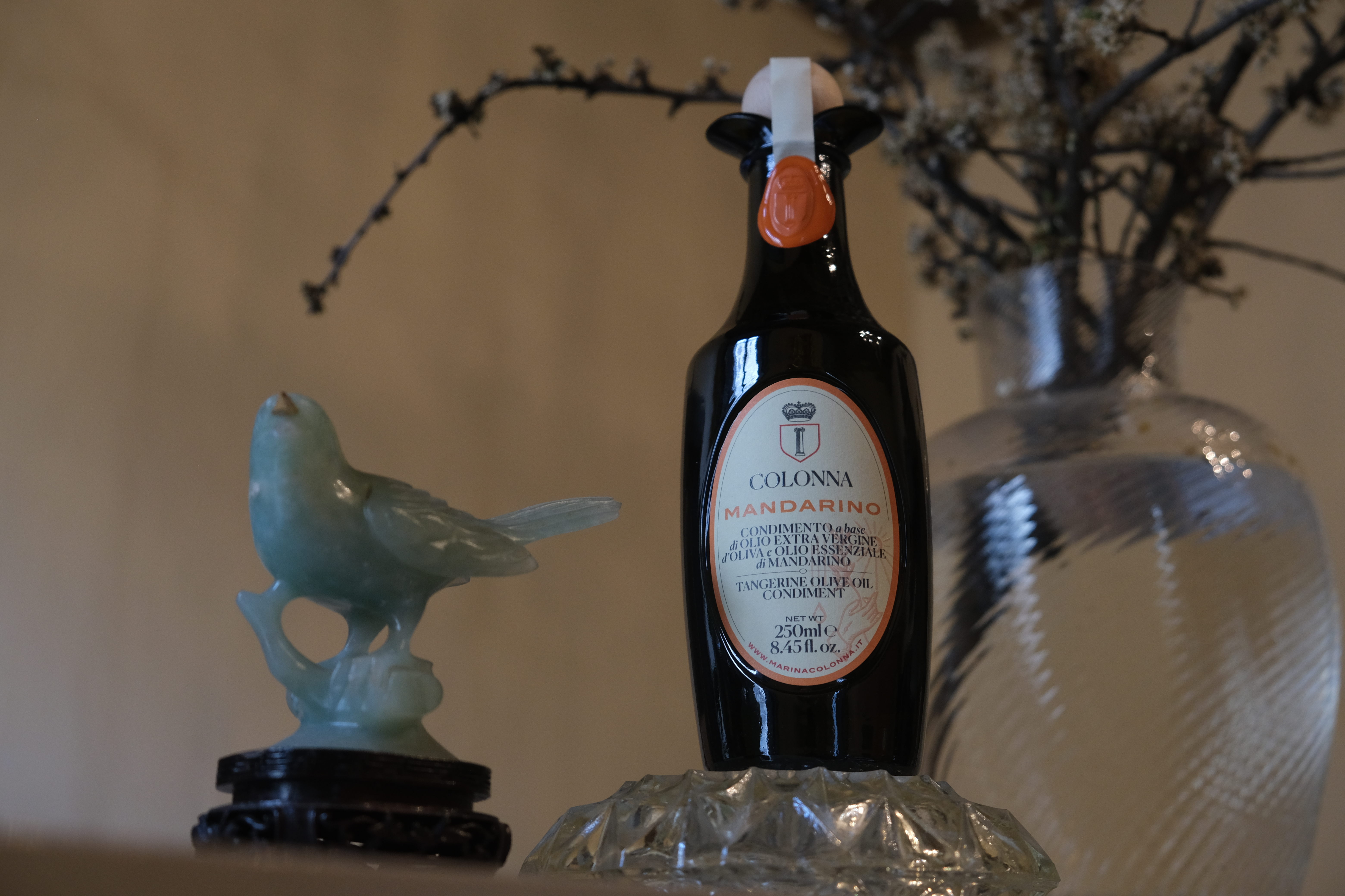 Extra virgin olive oil pressed together with organic Sicilian mandarins