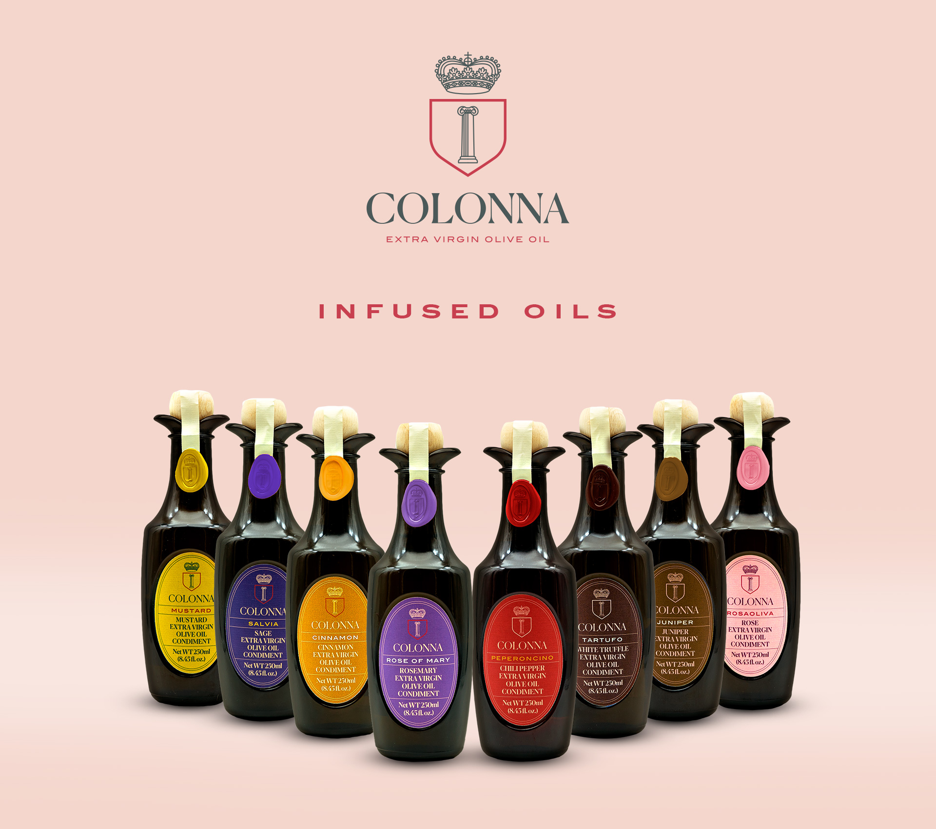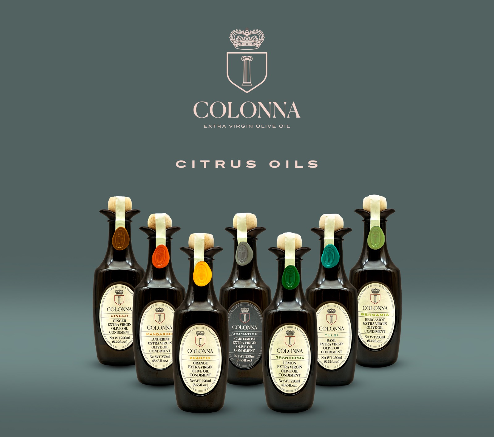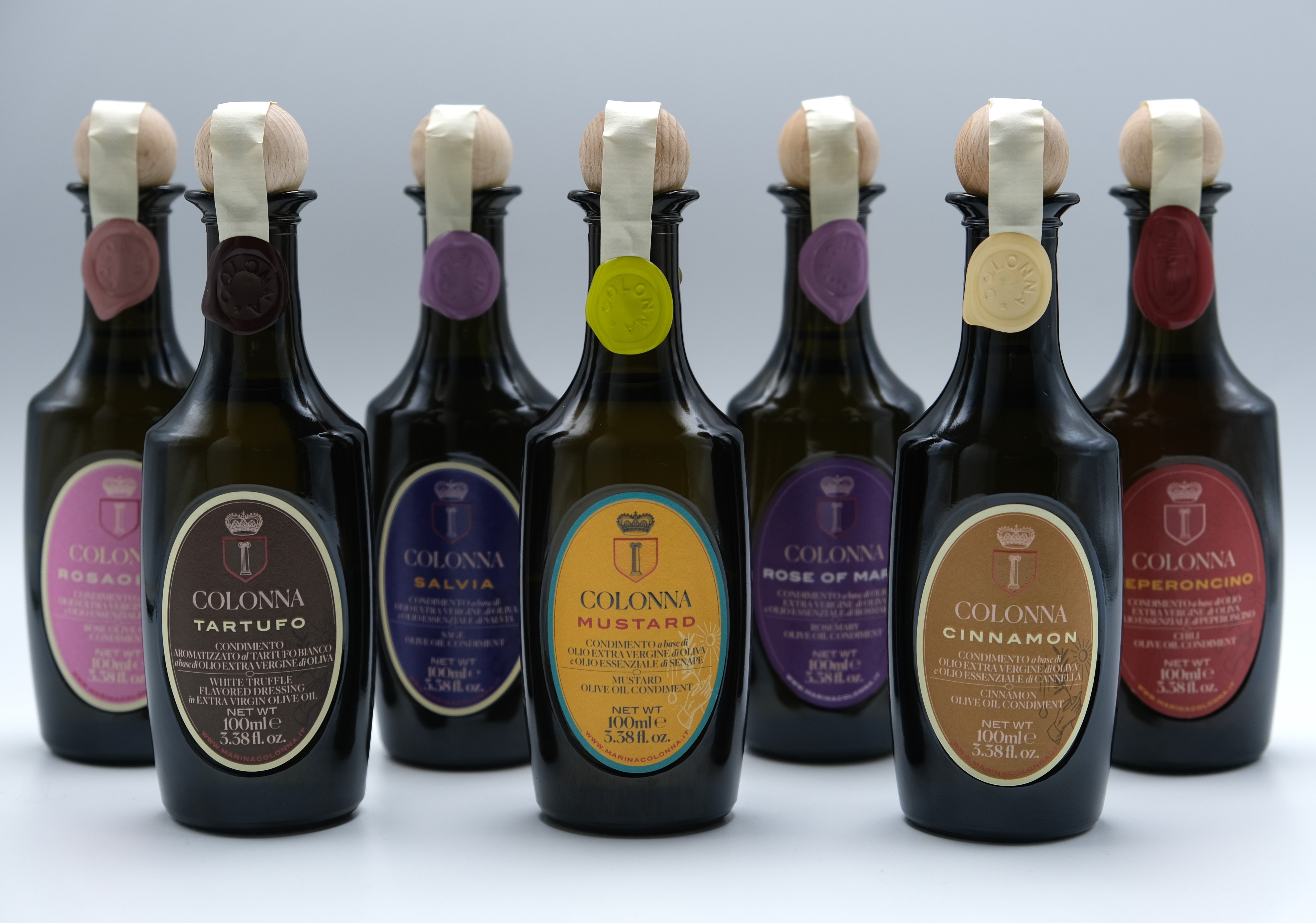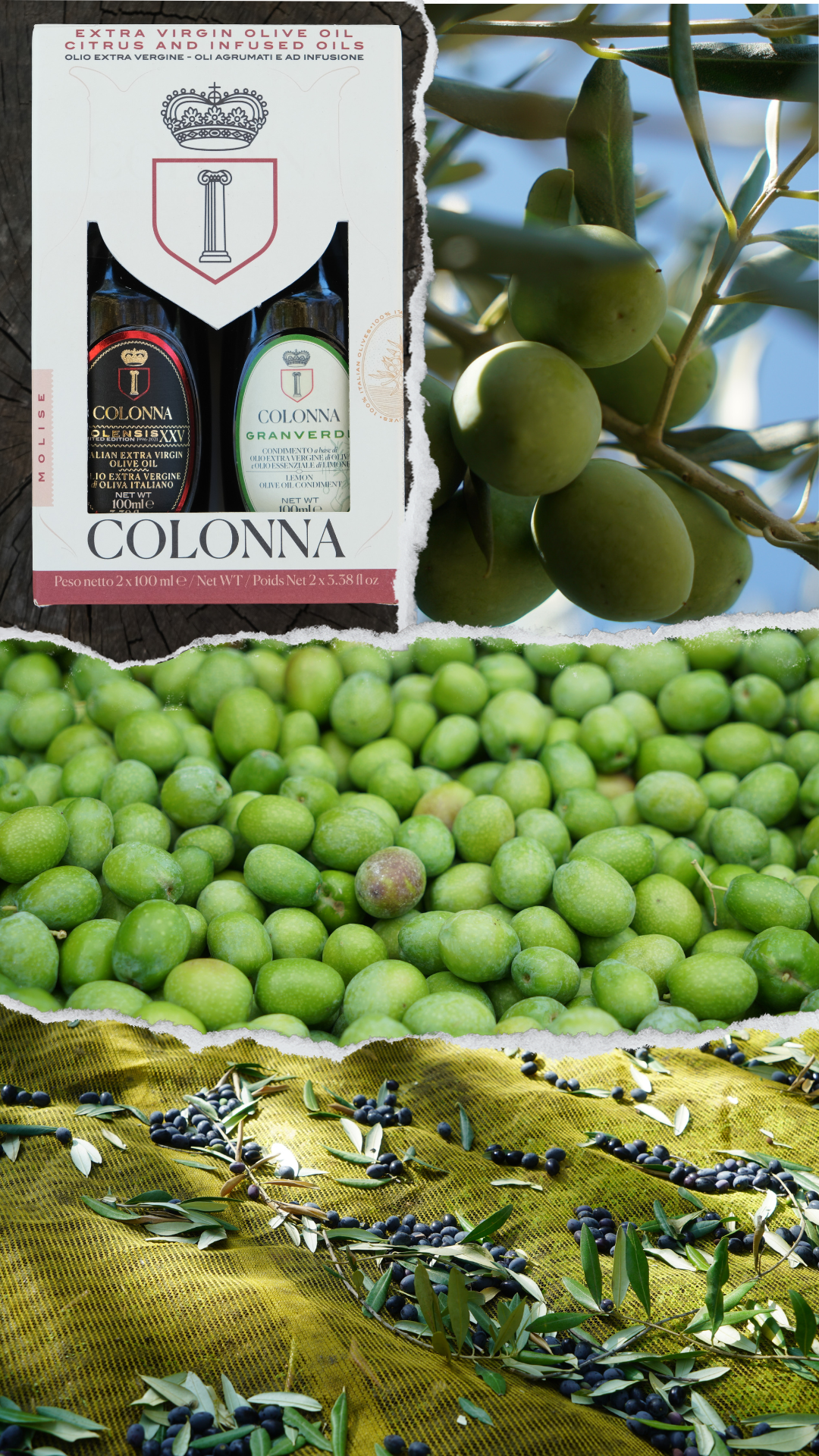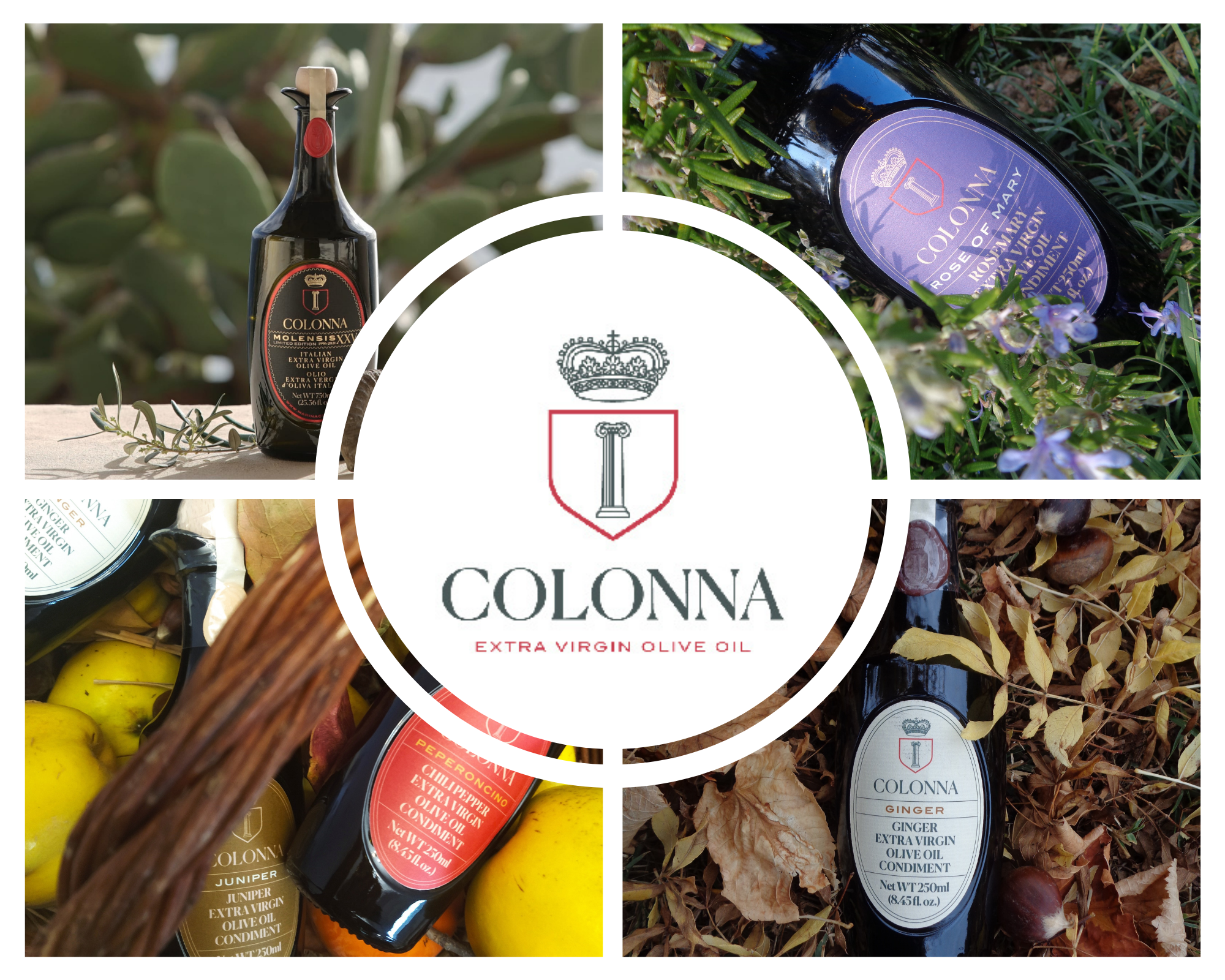 Located in the Molise region, the Colonna estate covers 160 hectares with cereals, various crops and olive groves. Over twelve different olive varieties, producing high quality extra virgin olive oils. From the tree to the bottle: Classic Blend, DOP selection, Organic and Monovarietal Peranzana, all bottled in the patented “Anfora”. Our flagship is Molensis, top brand limited quantity oil. A wide range of citrus oils, obtained by milling estate olives with organic citrus fruit or spices in the estate’s oil mill; infused oils, organic table olives from the farm, black and green olive patés and tomato sauces complete the range. The Colonna brand is available in the best gourmet shops worldwide.