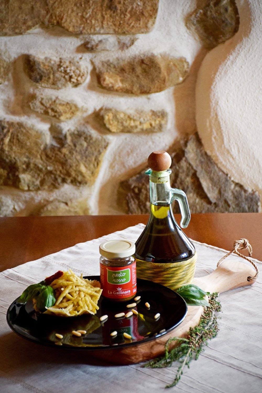 our red pesto is made with Dried tomatoes (36%), Genoese Basil DOP (10%), olive oil, Grana Padano cheese