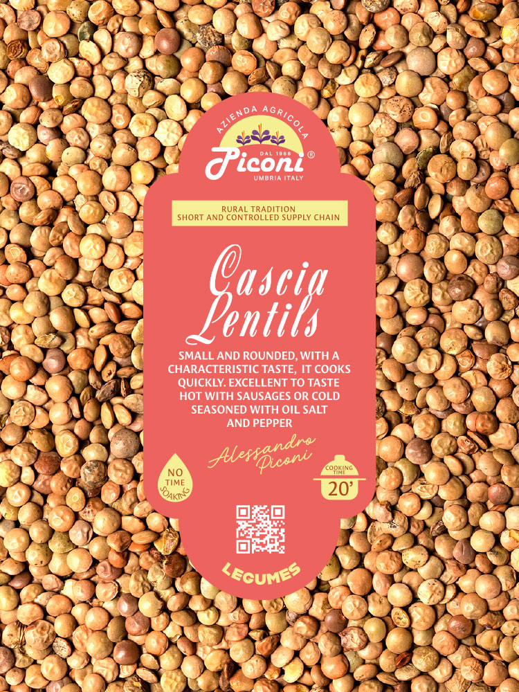 Lentils are rich in nutritional properties, so much so that they are considered a valid support for a good diet, thanks to the high concentration of fiber, iron, mineral salts and the low content of saturated fats and cholesterol. Although brown lentils are undoubtedly the best known, there are actually different types of lentils. The Umbrian are particularly suitable for preparing delicate soups or salads. Also excellent as a side dish for fish.