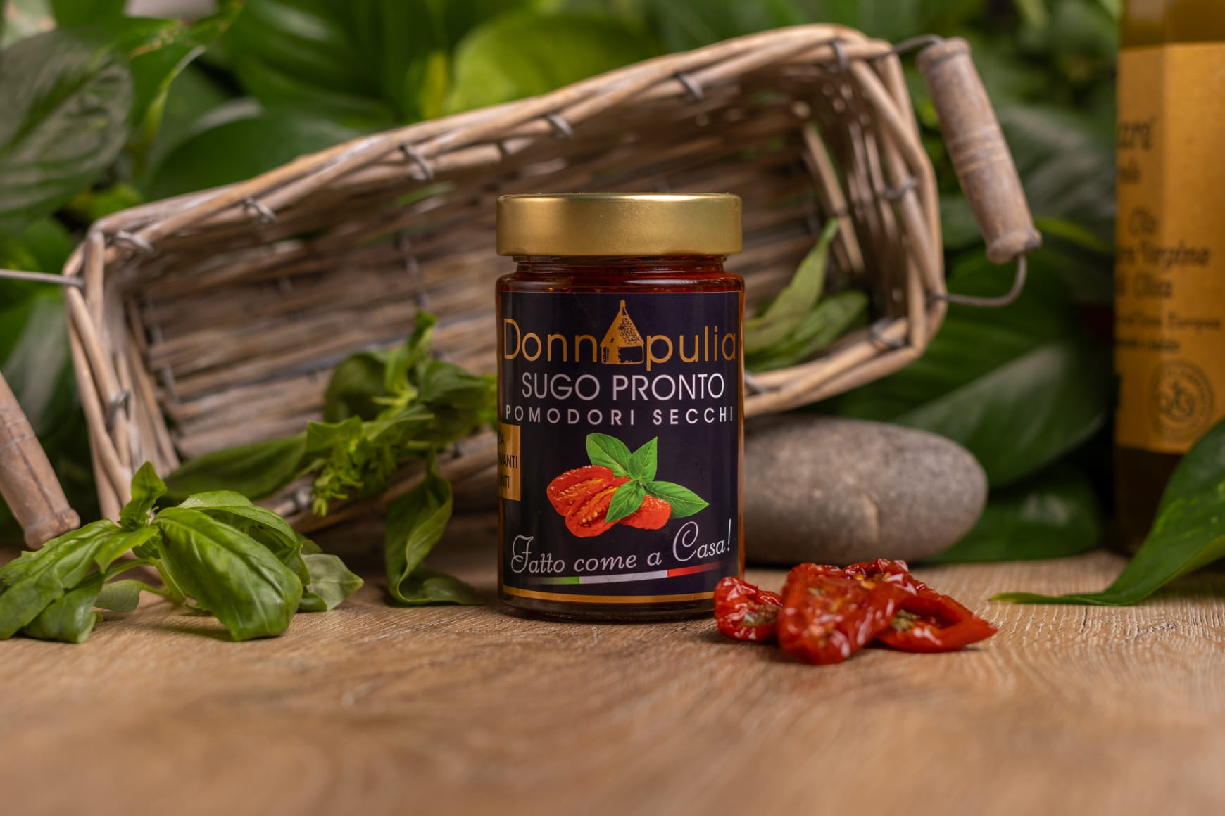 Ready-to-use sauce/condiment with datterino tomatoes and basil