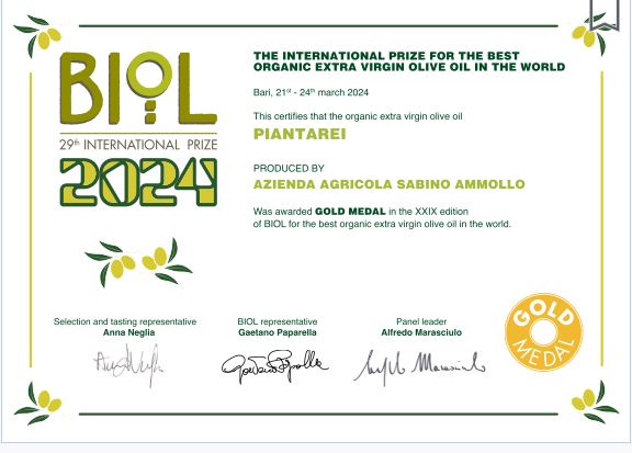 In 2024 Was Awarded GOLD MEDAL in the XXIX edition of BIOL for the BEST ORGANIC Extra virgin olive oil in the world.