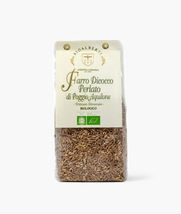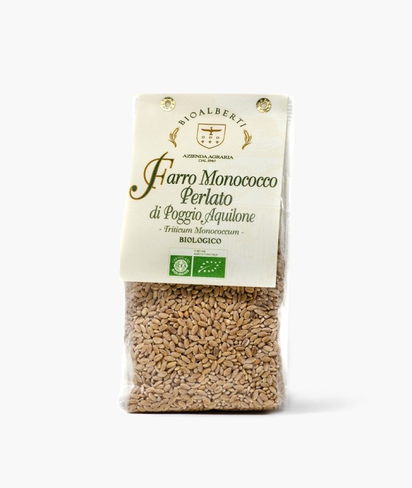 The organic Monococcum pearl spelt of Poggio Aquilone or small spelt is the oldest cereal in the world.