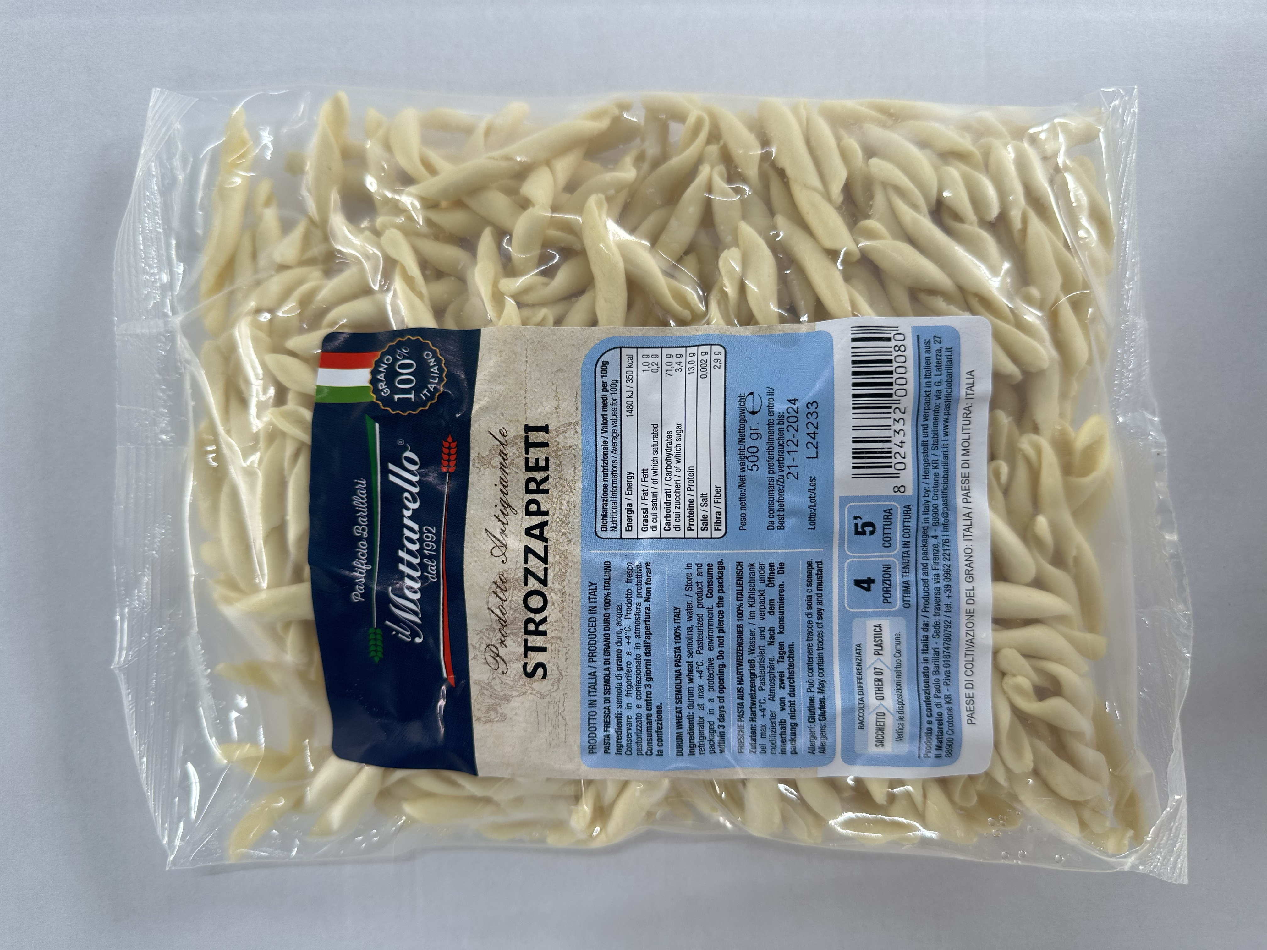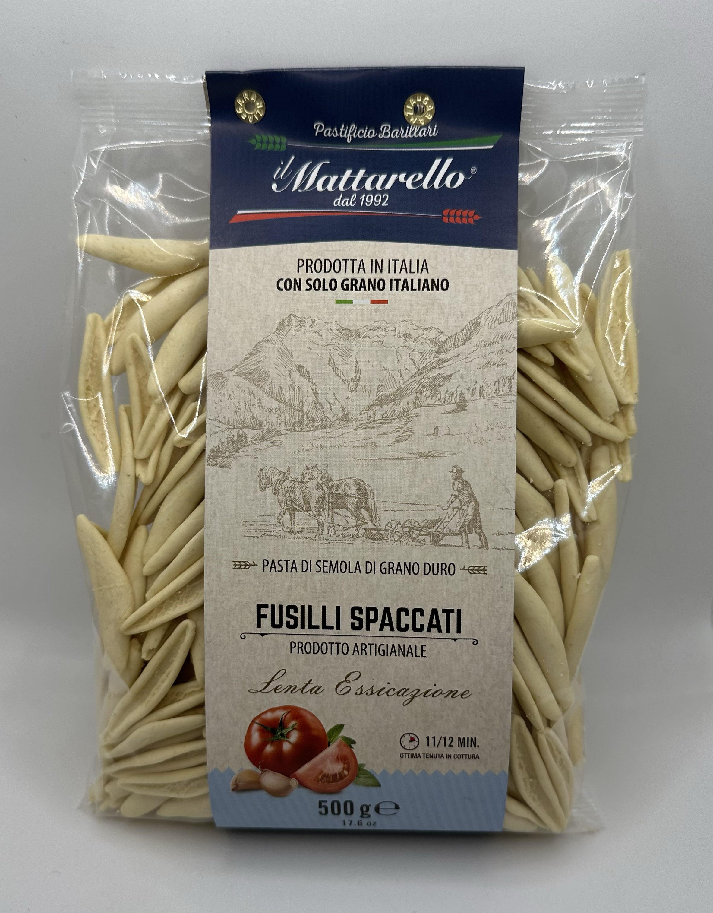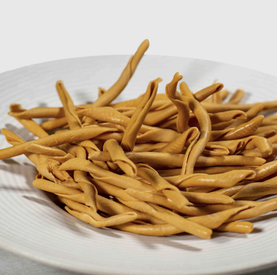 Split fusilli are a type of fresh pasta typical of southern Italy. Their shape is similar to that of olive leaves.